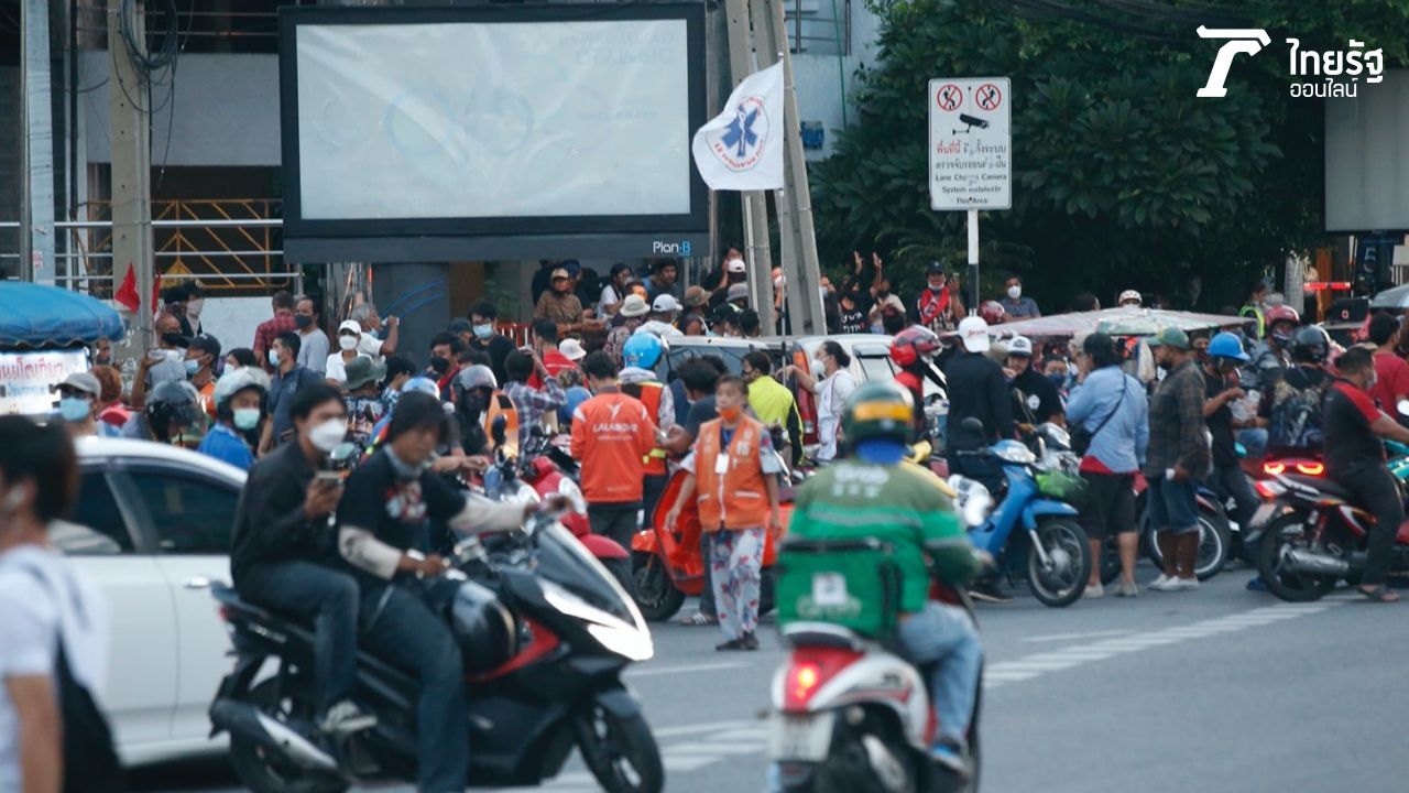 ม็อบกลุ่มทะลุเเก๊ส ทยอยรวมตัวชุมนุม เริ่มมีเสียงยิงประทัดใต้ทางด่วนดินแดง ขณะกลุ่มผู้ชุมนุมโมกหลวง ที่ระบุ จะไปที่หน้า สตช. ก่อนหน้า ถึงเวลาไม่ได้ปรากฏตัว