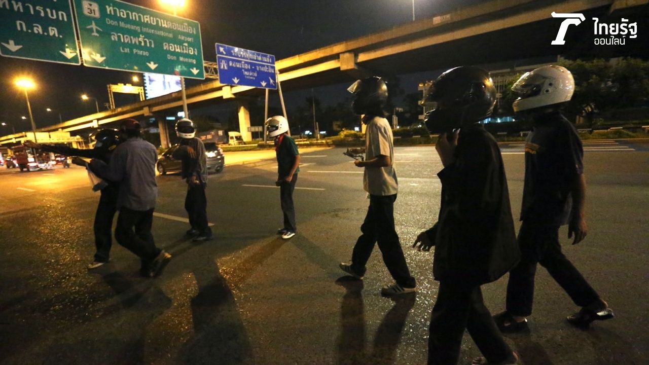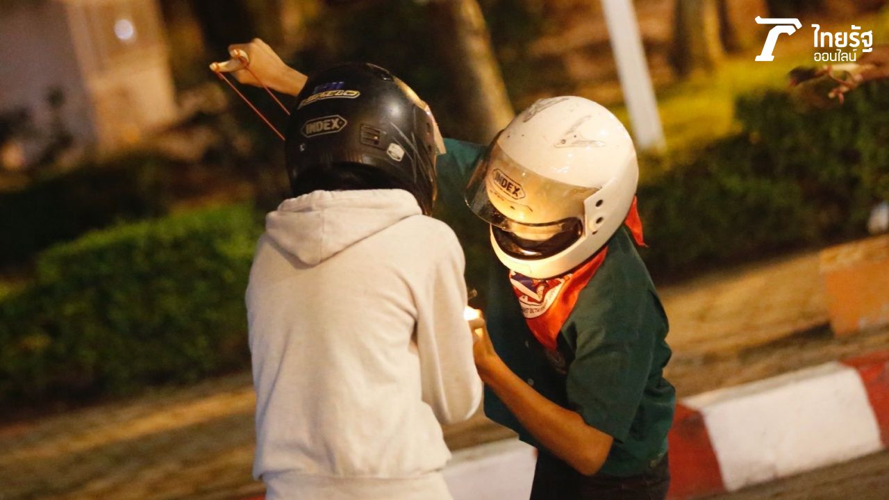 จากนั้นกลุ่มวัยรุ่นดังกล่าว ก็ขี่รถจักรยานยนต์ ถอยไปตั้งหลักที่บริเวณสามเหลี่ยมดินแดงตามเดิม