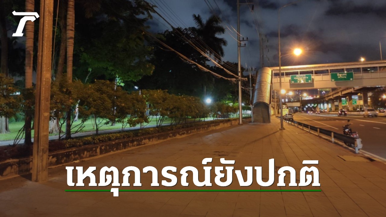 สถานการณ์แยกสามเหลี่ยมดินแดงมวลชนรวมตัวแต่บางตา ขณะถนนมิตรไมตรีไร้ผู้ชุมนุม สวนป่ายังไร้ชาวแฟลตดินแดง ด้าน คฝ. ตรึงกำลังบางส่วนบนสะพานลอยเหมือนเคย