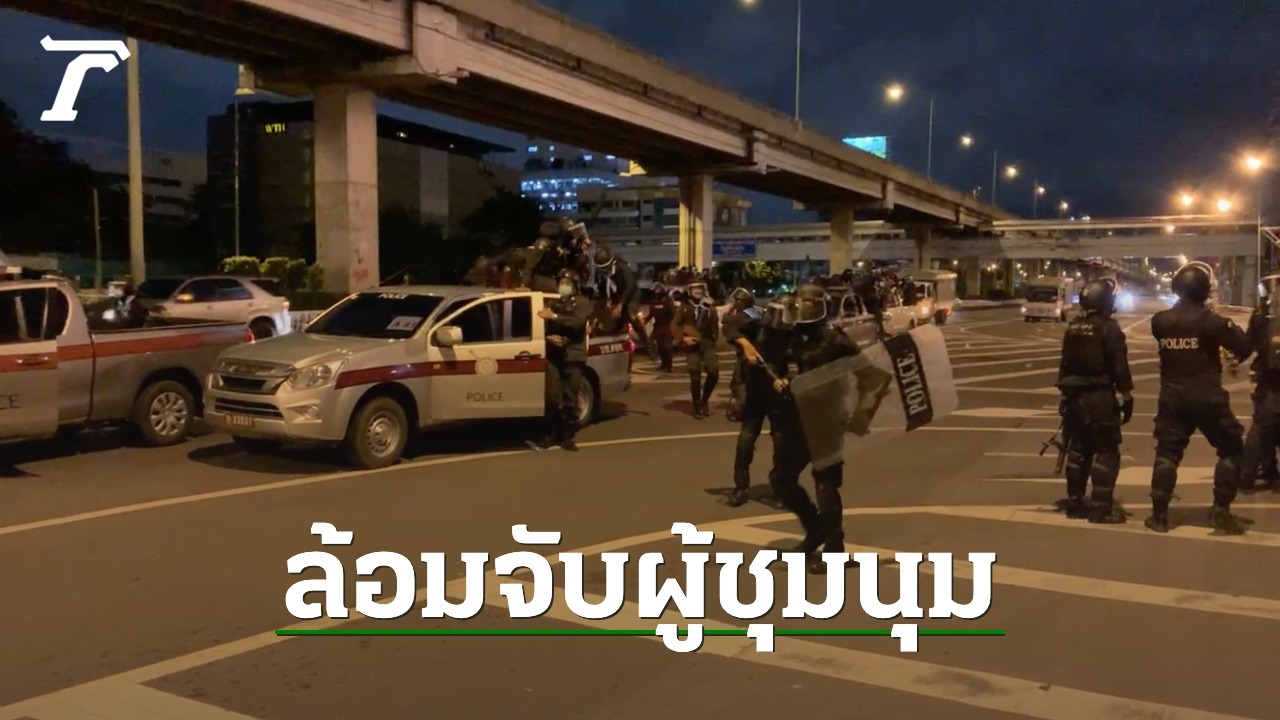 ตำรวจควบคุมฝูงชน จัดชุดเคลื่อนที่เร็วนำกำลังล้อมกรอบหลายทิศทาง ยิงกระสุนยางสกัด พบมีมวลชนถูกจับแล้ว