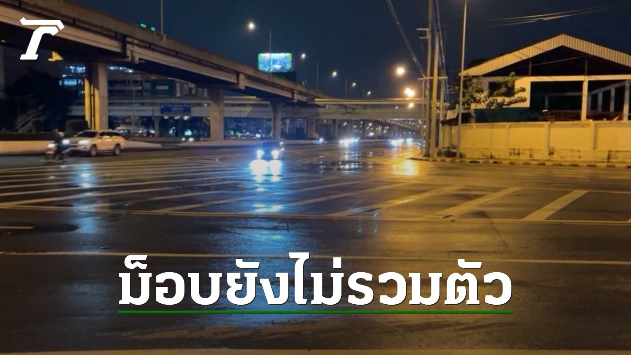 เจ้าหน้าที่ คฝ. เข้าวางกำลังที่ปากซอยมิตรไมตรี ก่อนเวลาเคอร์ฟิว ก่อนถอนตัวไปตามจุดต่างๆ ขณะที่มวลชน ยังไม่รวมตัวกัน หลังฝนตกหนัก