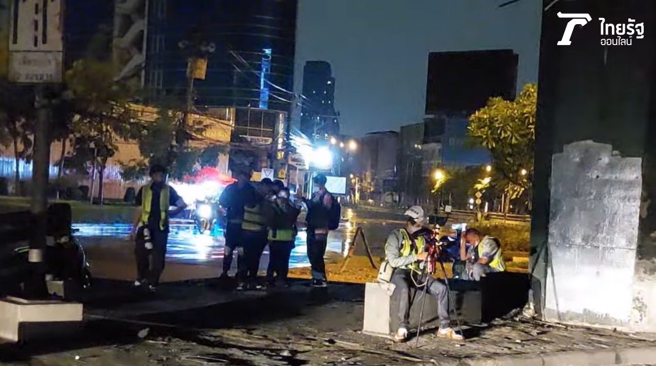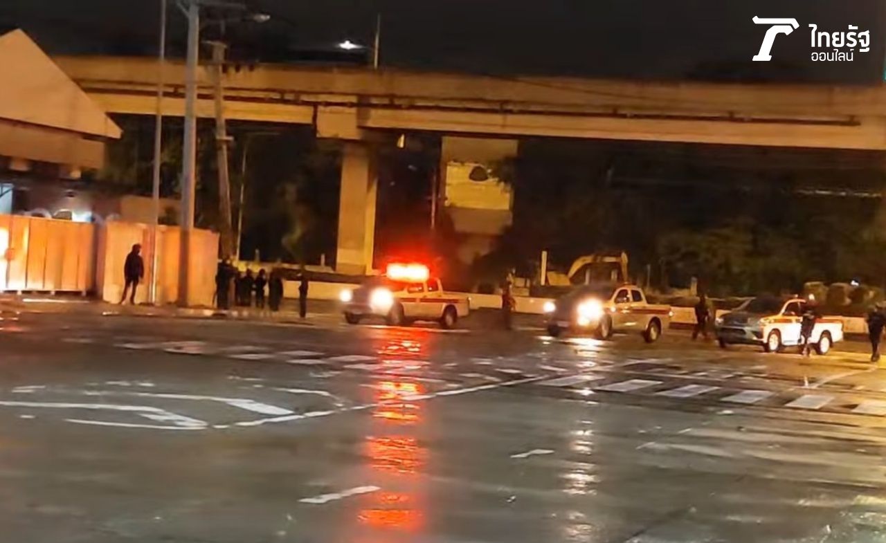 เวลา 00.15 น. ของวันที่ 6 ต.ค. 2564 เหตุการณ์ที่แยกสามเหลี่ยมดินแดงยังสงบ ส่วนสื่อมวลชนหลายสำนักยังเฝ้าติดตามสถานการณ์อยู่บริเวณจุดนี้.