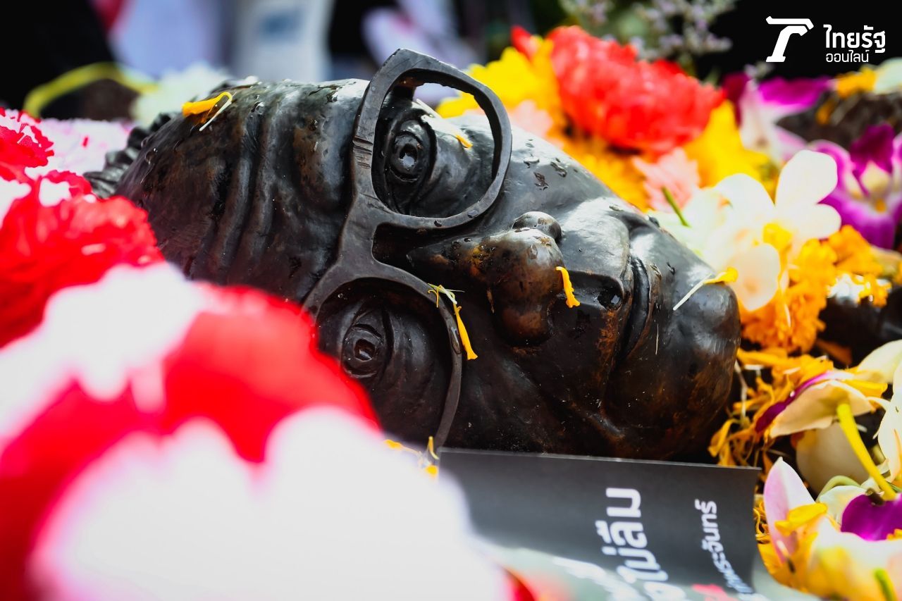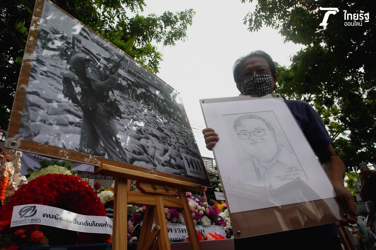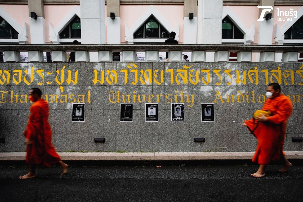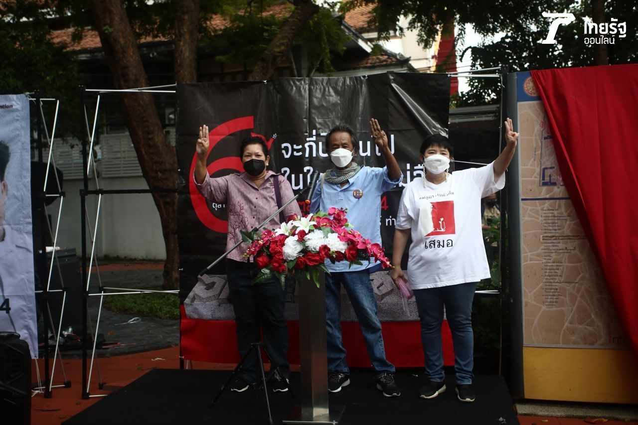 คนมีชื่อเสียงร่วมงาน 6 ตุลา ที่ ม.ธรรมศาสตร์ ท่าพระจันทร์ วางพวงมาลาและดอกไม้รำลึกวีรชน พร้อมมอบรางวัลจารุพงษ์ ทองสินธุ์ ให้ “เพนกวิน-พริษฐ์ ชิวารักษ์”