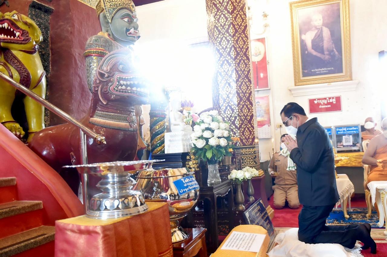 เมื่อเวลา 13.32 น. ที่ วัดพระมหาธาตุวรมหาวิหาร จ.นครศรีธรรมราช พล.อ.ประยุทธ์ จันทร์โอชา นายกรัฐมนตรีและรัฐมนตรีว่าการกระทรวงกลาโหม นำคณะรัฐมนตรี ประกอบด้วย นายอนุพงษ์ เผ่าจินดา รัฐมนตรีว่าการกระทรวงมหาดไทย นายชัยวุฒิ ธนาคมานุสรณ์ รัฐมนตรีว่าการกระทรวงดิจิทัลเพื่อเศรษฐกิจและสังคม นายสุชาติ ชมกลิ่น รัฐมนตรีว่าการกระทรวงแรงงาน นายอนุชา นาคาศัย รัฐมนตรีประจำสำนักนายกรัฐมนตรี นายอธิรัฐ รัตนเศรษฐ รัฐมนตรีช่วยว่าการกระทรวงคมนาคม นายสุรสีห์ กิตติมณฑล เลขาธิการสำนักงานทรัพยากรน้ำแห่งชาติ (สทนช.) และหน่วยงานที่เกี่ยวข้อง เข้าสักการะพระบรมธาตุเจดีย์ และถวายเครื่องไทยธรรม จตุปัจจัยแด่พระเทพวินยาภรณ์ (สมปอง ปัญญาทีโป) เจ้าอาวาสวัดพระมหาธาตุวรมหาวิหาร และรองเจ้าคณะภาค 16-17-18 ซึ่งวัดพระมหาธาตุวรมหาวิหาร ถือเป็นวัดคู่บ้านคู่เมืองของจังหวัดนครศรีธรรมราช