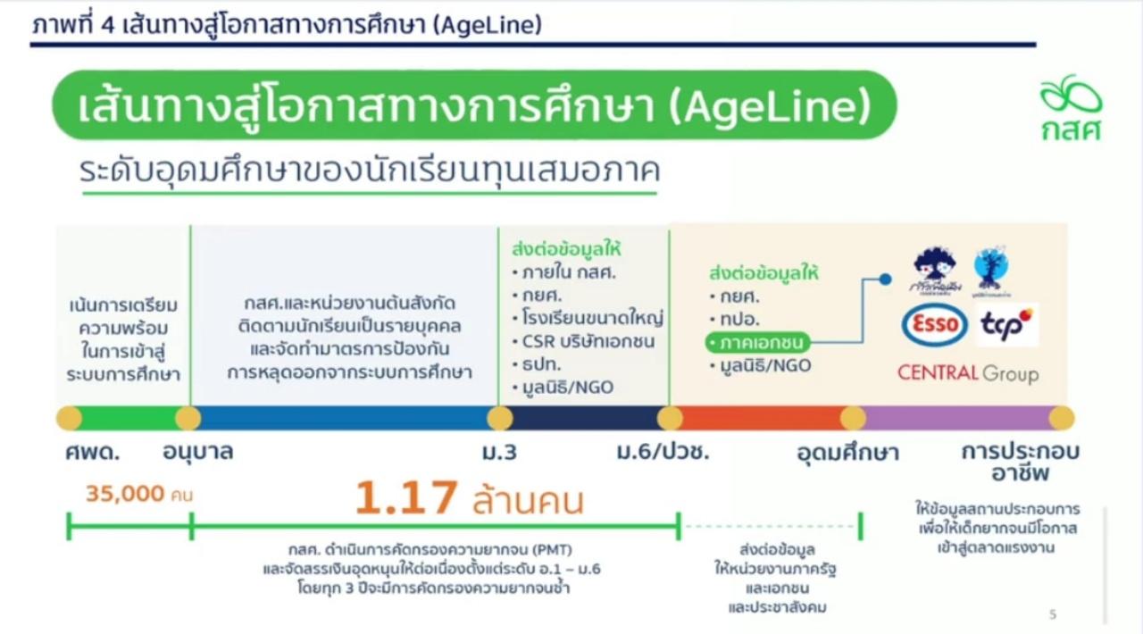 “หน่วยงานภายใต้ความร่วมมือนี้ควรช่วยพัฒนามาตรการที่เชื่อมโยงกัน ระหว่างการศึกษาและการประกอบอาชีพที่มั่นคง เพื่อให้ผลจากการทำงานของระบบหลักประกันโอกาสทางการศึกษา สามารถส่งผลเชิงระบบไปสู่การแก้ไขปัญหาความเหลื่อมล้ำทางสังคมและความยากจนของประเทศได้อย่างยั่งยืน ผมเชื่อว่าเด็กๆ เยาวชนที่จะได้รับโอกาสทางการศึกษาในระดับอุดมศึกษาจำนวนมากนี้ อาจจะมีบางคนที่เป็นสมาชิกครอบครัวรุ่นแรกๆ ที่มีโอกาสสำเร็จการศึกษาระดับอุดมศึกษา หากประชากรของไทยกลุ่มนี้ ซึ่งรุ่นคุณพ่อคุณแม่มีรายได้น้อยที่สุด ร้อยละ 10-20 ของประเทศ สามารถสำเร็จการศึกษาและมีงานทำ มีรายได้ และความมั่นคงอยู่ในระดับกลางๆ ของประเทศได้ ย่อมจะเป็นการสนับสนุนให้เกิดการเลื่อนชั้นทางสังคม (Social Mobility) ที่จะช่วยส่งเสริมการเจริญเติบโต และลดความเหลื่อมล้ำของเศรษฐกิจสังคมไทยได้ไปพร้อมๆ กัน” ดร.กฤษณพงศ์ กล่าว.