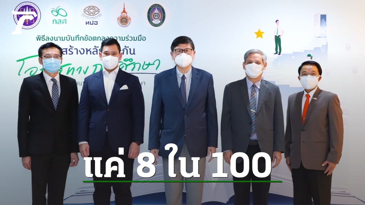 5 หน่วยงาน จับมือ พัฒนาระบบหลักประกันโอกาสทางการศึกษา ดร.ประสาร ชี้ ปรากฏการณ์ The Lost Einsteins ในไทยสูญเสีย เด็กช้างเผือกเพราะยากจน เผยมีเพียง 8 ใน 100 คน เท่านั้น ที่ได้เรียนมหาวิทยาลัย
