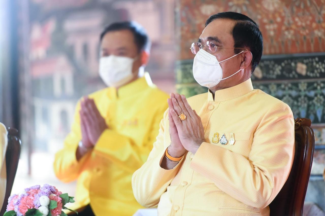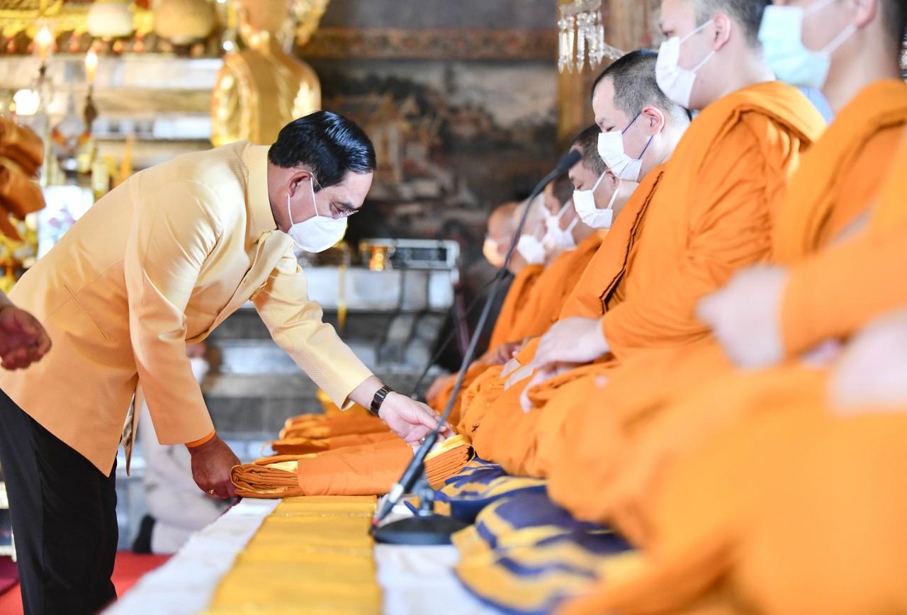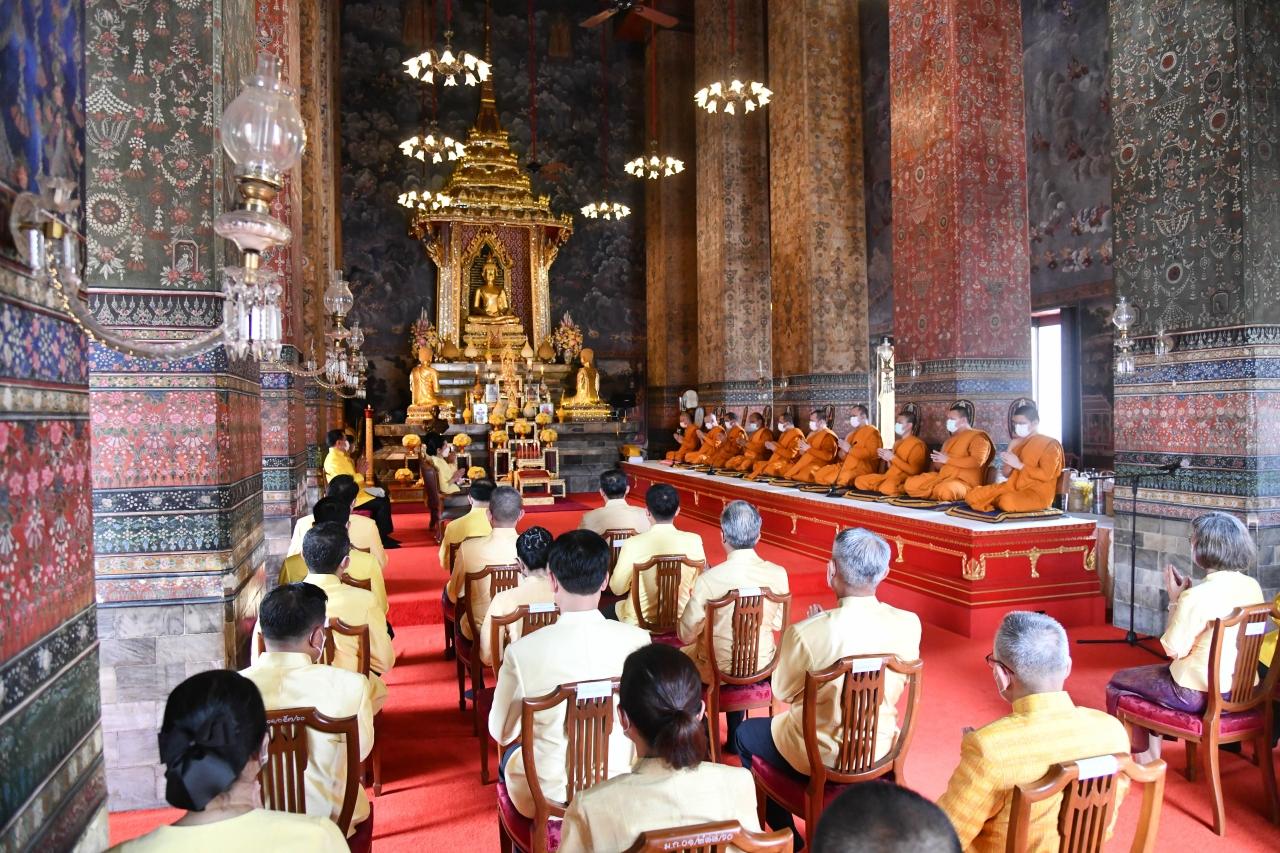 ทั้งนี้ เมื่อนายกรัฐมนตรีและภริยาเดินทางมาถึง พระสงฆ์ 10 รูป ขึ้นนั่งอาสน์สงฆ์ นายกรัฐมนตรีจุดธูปเทียนบูชาพระรัตนตรัย จุดธูปเทียนเครื่องทองน้อยหน้าพระบรมรูปปั้น พระบาทสมเด็จพระบรมชนกาธิเบศร มหาภูมิพลอดุลยเดชมหาราช บรมนาถบพิตร พระสงฆ์ให้ศีล เจ้าหน้าที่ปฏิบัติพิธีสงฆ์อาราธนาพระปริตร สวดพระพุทธมนต์ ต่อมา พล.อ.ประยุทธ์ และภริยาถวายผ้าไตร เครื่องไทยธรรม และภัตตาหาร พระสงฆ์สดับปกรณ์และอนุโมทนา นายกรัฐมนตรีกรวดน้ำแล้วกราบนมัสการพระรัตนตรัยหน้าโต๊ะหมู่บูชา เสร็จแล้วถวายความเคารพหน้าพระบรมรูปปั้น พระบาทสมเด็จพระบรมชนกาธิเบศร มหาภูมิพลอดุลยเดชมหาราช บรมนาถบพิตร เสร็จพิธี.