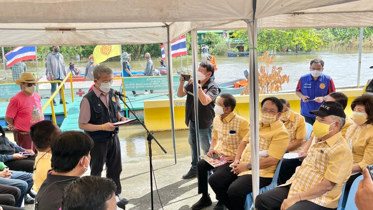 สมาชิกวุฒิสภา ลงพื้นที่ให้กำลังใจ มอบถุงยังชีพและร่วมบริจาคเงิน 44,000 บาท เพื่อซื้อเรือไฟเบอร์ 8 ลำ ช่วยประชาชน ที่ประสบอุทกภัย อ.วิเศษชัยชาญ จ.อ่างทอง