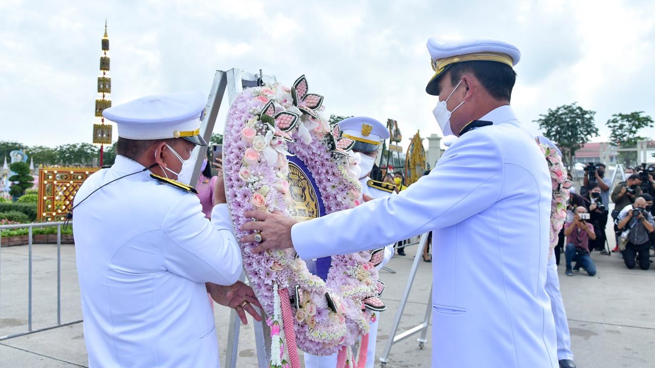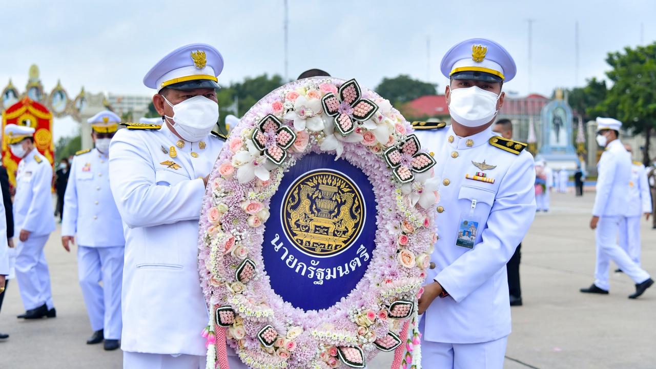 โอกาสนี้ นายกรัฐมนตรีถวายความเคารพ แล้ววางพวงมาลาจำนวน 2 พวง ในนามนายกรัฐมนตรีและคณะรัฐมนตรี เสร็จแล้วนายกรัฐมนตรีถวายเคารพ เป็นอันเสร็จพิธี