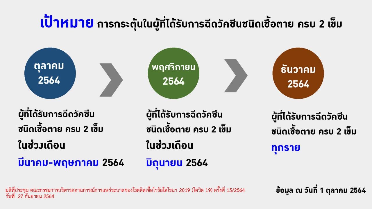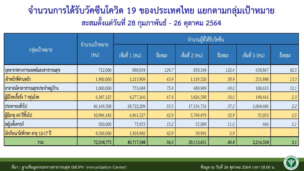 วันที่ 27 ต.ค. 2564 ที่ทำเนียบรัฐบาล แพทย์หญิงสุมนี วัชรสินธุ์ ผู้อำนวยการสำนักสื่อสารความเสี่ยงและพัฒนาพฤติกรรมสุขภาพ แถลงข่าว ศูนย์บริหารสถานการณ์การแพร่ระบาดของโรคติดเชื้อไวรัสโคโรนา 2019 (ศบค.) ว่า เมื่อแยกตามกลุ่มที่มีการฉีดวัคซีน พบว่า กลุ่มที่มีความสำคัญในช่วงนี้คือ กลุ่มนักเรียน นักศึกษา หลังจากคิกออฟฉีดวัคซีนตั้งแต่ 4 ต.ค.ที่ผ่านมา โดยล่าสุดมีผู้ได้ฉีดวัคซีนไปแล้ว 1.9 ล้านคน จาก 4.5 ล้านคน คิดเป็น 42.8% นอกจากนี้ยังต้องเร่งระดมฉีดวัคซีนให้กับครูและนักเรียนเพิ่มเติมด้วยเพื่อให้มีความครอบคลุมในการรับวัคซีน