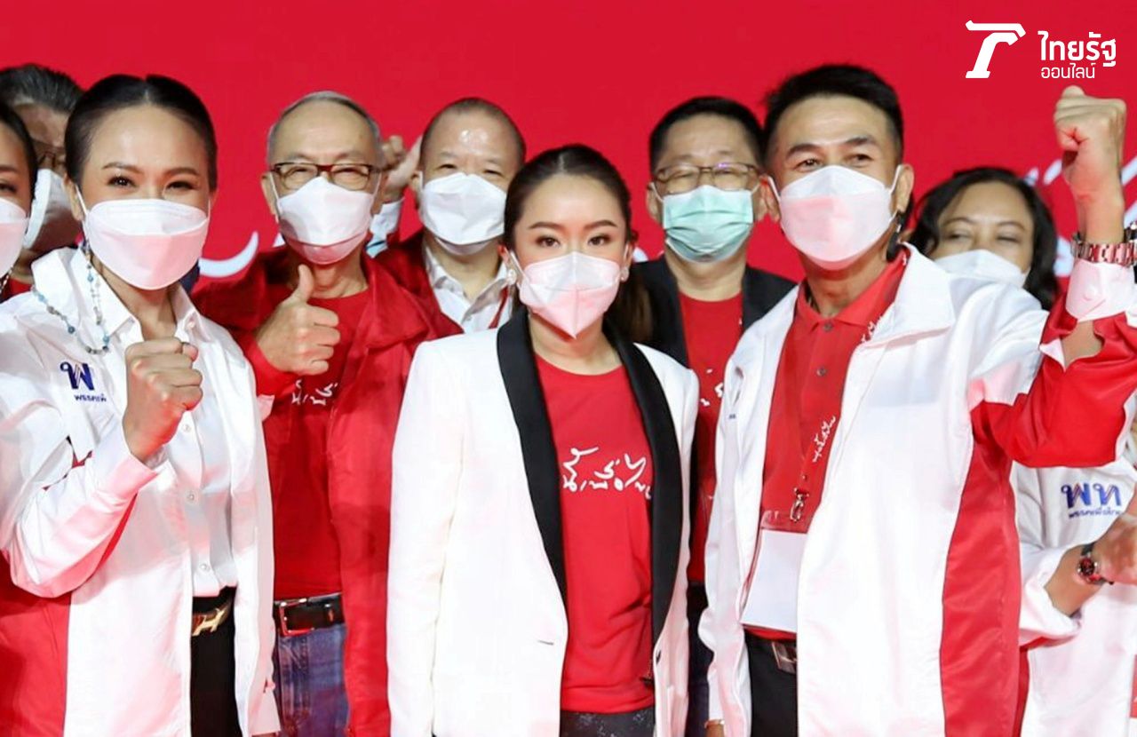 แต่แล้วช่วงใกล้เที่ยงวัน ก็เป็นไปตามคาด นายสมพงษ์ อมรวิวัฒน์ หัวหน้าพรรคเพื่อไทย ได้ขึ้นเวทีประกาศลาออกจากตำแหน่งหัวหน้า หลังจากที่มีการปล่อยข่าวออกมาก่อนหน้านี้ และประกาศเชิญ "อุ๊งอิ๊ง แพทองธาร ชินวัตร" บุตรสาวคนเล็กของนายทักษิณ ชินวัตร อดีตนายกรัฐมนตรี ขึ้นเป็นประธานที่ปรึกษาการมีส่วนร่วมและนวัตกรรมใหม่ของพรรคเพื่อไทย