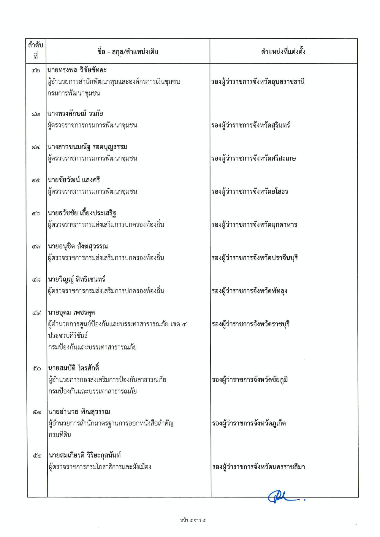 นายสุทธิพงษ์ จุลเจริญ ปลัดมหาดไทย ลงนามแต่งตั้งโยกย้าย 52 รองผู้ว่าราชการจังหวัด เพื่อทดแทนผู้เกษียณอายุราชการ ทั้งนี้มีผลตั้งแต่วันที่ 15 พ.ย.นี้เป็นต้นไป
