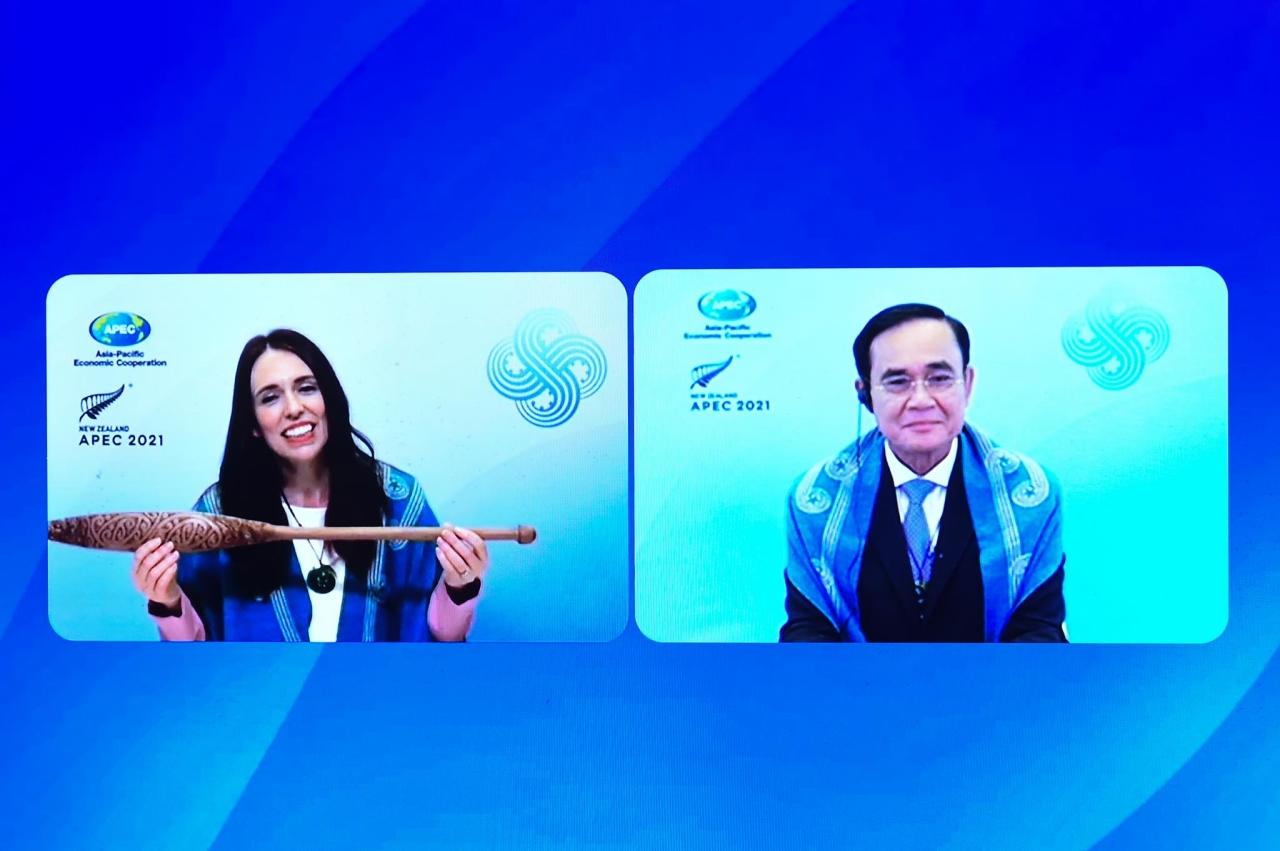 ในโอกาสนี้ พล.อ.ประยุทธ์ กล่าวถึงทีมเอเปคนิวซีแลนด์ที่นำพาทุกคนร่วมการเดินทางเพื่อฟื้นฟูและฟื้นคืนได้เป็นอย่างดี ขอขอบคุณที่ท่านได้ส่งมอบไม้พาย waka ให้ประเทศไทย เพื่อขับเคลื่อนเรือเอเปคต่อไป ประเทศไทยรู้สึกเป็นเกียรติอย่างยิ่งที่จะเป็นเจ้าภาพจัดการประชุมเอเปคประจำปี ค.ศ. 2022 (พ.ศ. 2565) ขอยืนยันว่าจะสานต่อการร่วมกัน ทำงาน และเติบโตไปด้วยกัน และนายกรัฐมนตรียังได้เชิญชวน ผู้นำเขตเศรษฐกิจทุกคน ร่วมกันสานความเข้มแข็ง และความมุ่งมั่นในการบรรลุความตั้งใจที่จะสร้างประชาคมเอเชีย-แปซิฟิก ที่เปิดกว้าง มีพลวัต ยืดหยุ่น และสงบสุข เพื่อคนรุ่นหลัง