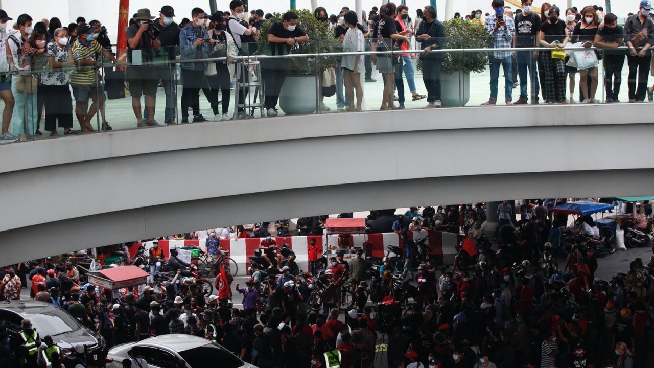 เมื่อเวลา 15.40 น. ที่แยกปทุมวัน ผู้สื่อข่าวรายงานว่า สถานการณ์การนัดชุมนุมใหญ่ กิจกรรมต่อต้านระบอบสมบูรณาญาสิทธิราชย์ ปกป้องระบอบประชาธิปไตย ทั้งนี้มีกลุ่มแนวร่วมธรรมศาสตร์และการชุมนุม กลุ่มทะลุฟ้า พร้อมเครือข่ายที่เคลื่อนไหวทางการเมืองอีกหลายกลุ่ม นำมวลชนร่วมชุมนุมพร้อมทำกิจกรรมเชิงสัญลักษณ์ โดยกลุ่มมวลชนได้มารวมตัวกันที่บริเวณหน้าหอศิลปวัฒนธรรมกรุงเทพมหานคร และมีมวลชนผู้ชุมนุมลงไปบนถนนและได้ปิดการจราจรบริเวณหน้าหอศิลป์ กทม. รถยนต์ไม่สามารถผ่านสัญจรไปมาได้แล้ว ในขณะที่ฝั่งตรงข้าม รถยนต์ยังสามารถผ่านไปมาได้อยู่