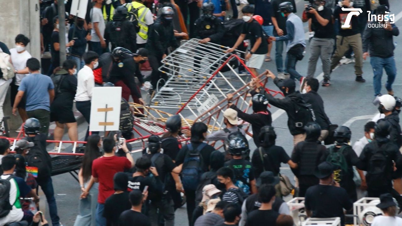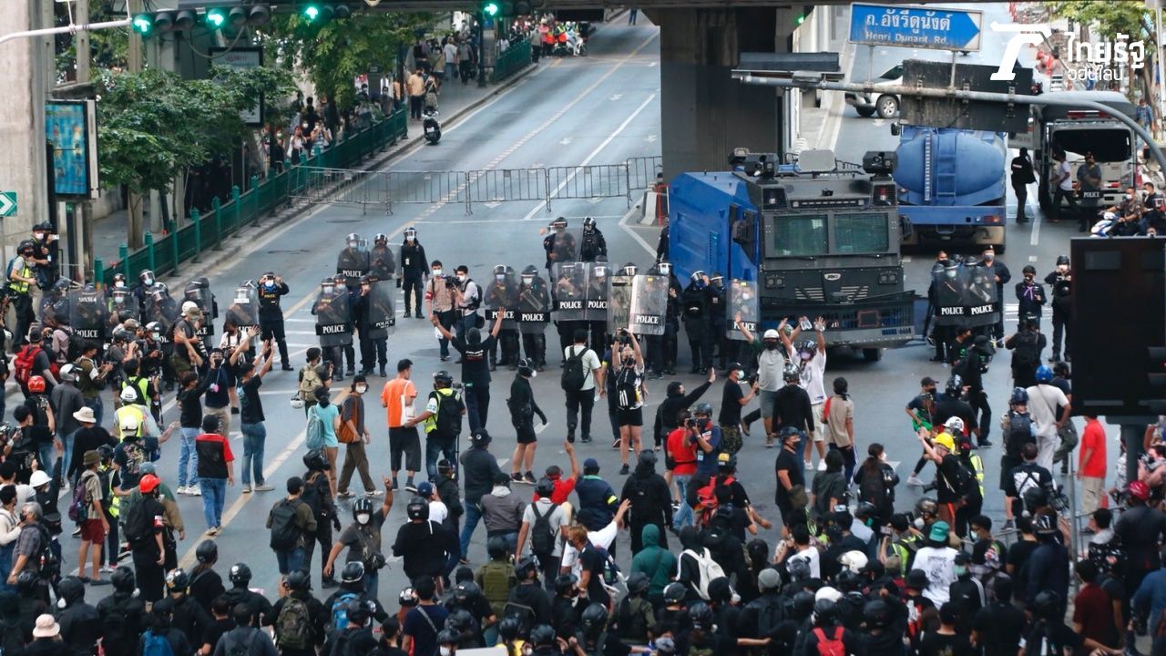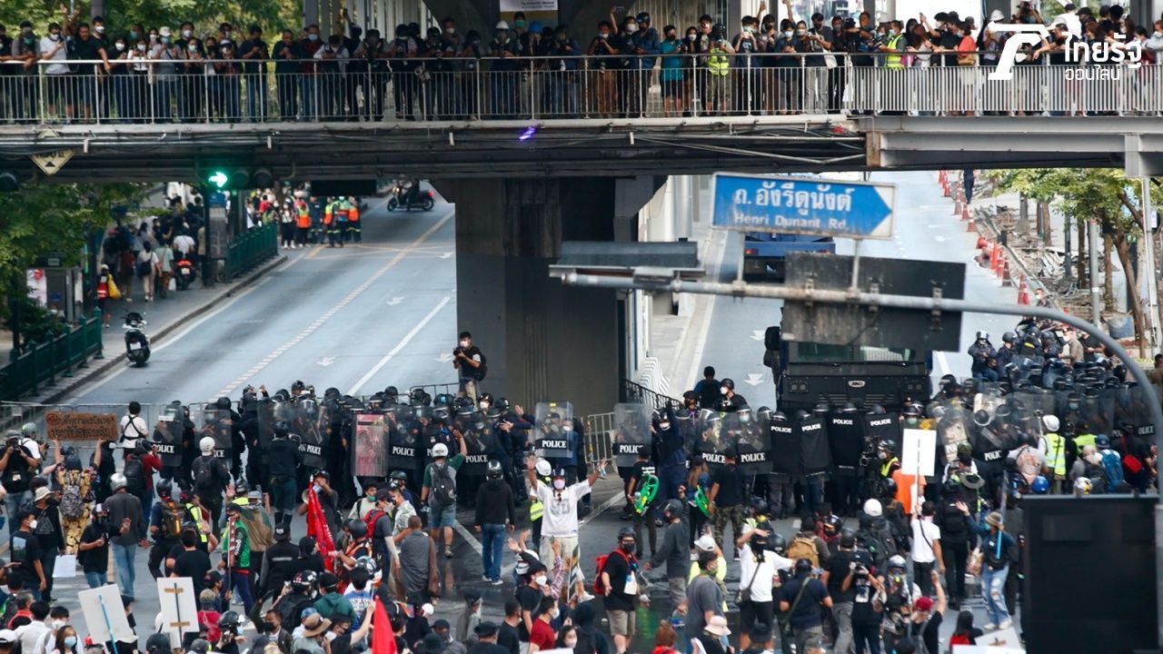 “ม็อบ 14 พฤศจิกา” ประจันหน้าตำรวจ แยกเฉลิมเผ่า ก่อนเจรจาสำเร็จ จนท.ยอมเลี้ยวขวาเข้าแยกอังรีดูนังต์ มุ่งหน้าสถานทูตเยอรมนี แทนการผ่านหน้าสำนักงานตำรวจแห่งชาติ มีรายงานคนถูกยิงบาดเจ็บ 1ราย