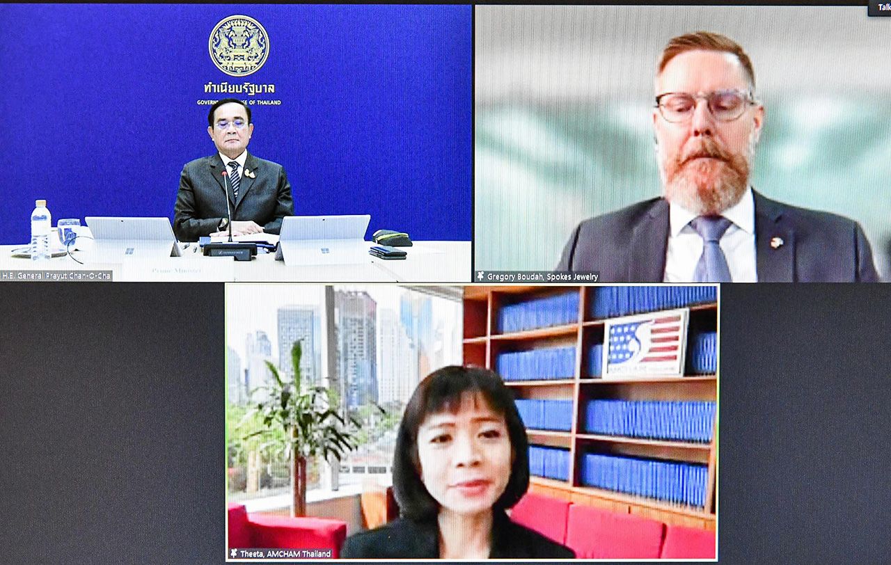 ต่อมา พล.อ.ประยุทธ์ให้สัมภาษณ์ว่า ได้กล่าวถึงวิสัยทัศน์ของรัฐบาลกับคณะนักธุรกิจจากหอการค้าอเมริกันฯ ที่มีผู้ประกอบการหลายร้อยบริษัท พร้อมสนับสนุนไทยดำเนินนโยบายด้านเศรษฐกิจ หวังว่าจะมีการลงทุนเพิ่มมากขึ้นในปีหน้าและระยะต่อไปทุกคนยอมรับและชื่นชมแนวทางและวิสัยทัศน์ของพวกเรา เมื่อถามว่ากลุ่มนักธุรกิจมีการสอบถามสถานการณ์ทางการเมืองของไทยหรือไม่ พล.อ.ประยุทธ์ตอบว่า “ไม่มีใครพูดถึง เขาไม่ห่วง เขาไม่พูดถึงเลย เขาชื่นชมการทำงานรัฐบาลในการกำหนดนโยบายด้วยซ้ำ ผมว่าวันนี้เอาประเทศไทยให้รอดก่อน เอาเศรษฐกิจให้รอด เอาโควิดให้รอดก่อน เรื่องอื่นพอได้แล้ว เรื่องการเมืองไม่มีอะไรเกิดขึ้น พอเถอะ ขอกัน”