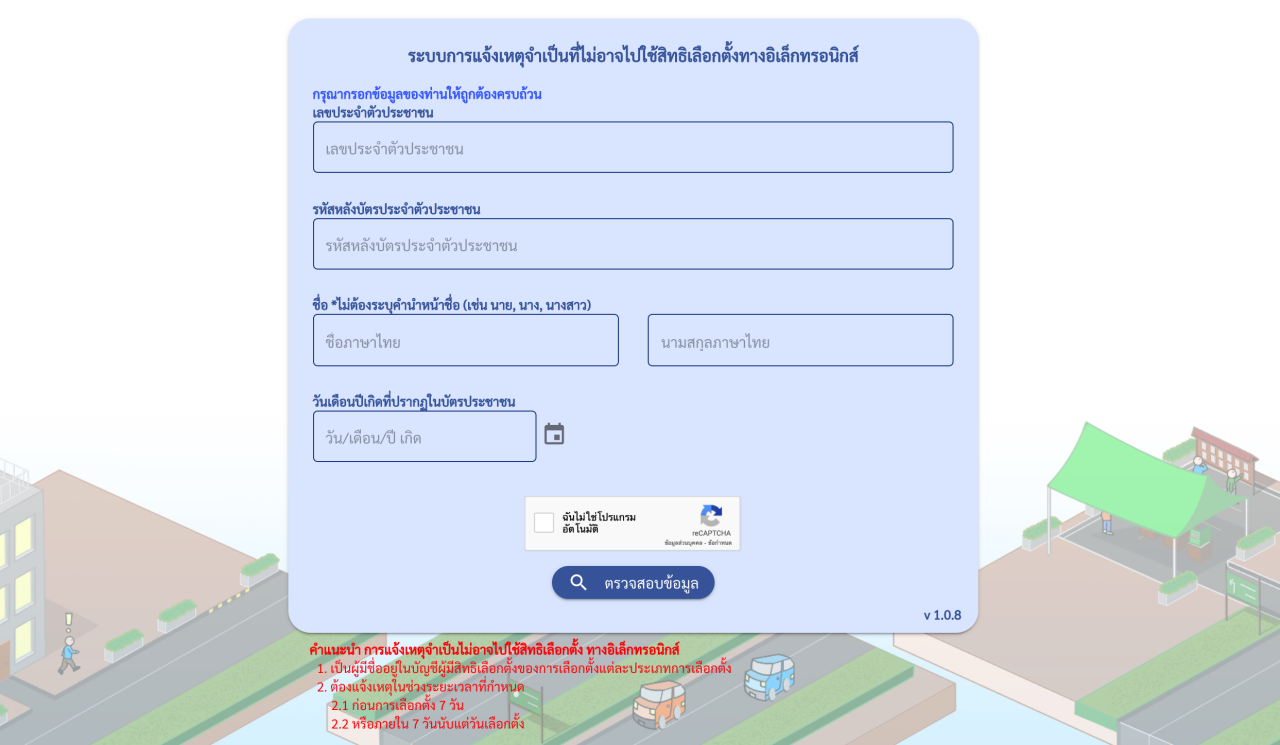 - แอปพลิเคชัน Smart Vote หัวข้อ การแจ้งเหตุจำเป็นที่ไม่อาจไปใช้สิทธิ์เลือกตั้งทางอิเล็กทรอนิกส์