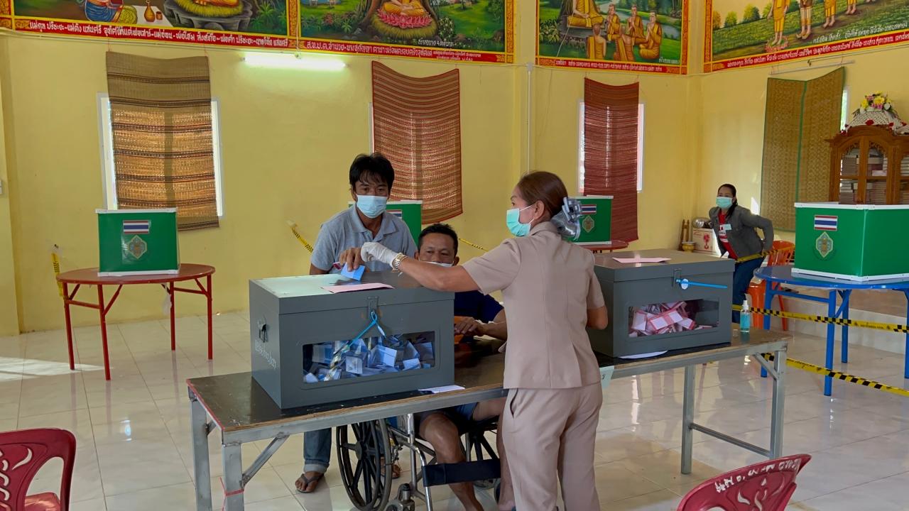เมื่อเวลา 14.30 น. ของวันที่ 28 พ.ย.2564 ที่ศาลาวัดบ้านโคกล่าม หน่วยเลือกตั้ง 1 เขตเลือกตั้งที่ 9 ตำบลหนองเรือ อ.นาเชือก จ.มหาสารคาม นายอดิศักดิ์ สมบัติคำ หรือ “จ่าตา” ว่าที่ผู้สมัคร ส.ส.พรรคก้าวไกล ได้ขอแพทย์ออกจาก รพ.มหาสารคาม เพื่อมาใช้สิทธิ์เลือกตั้ง นายก อบต.และสมาชิก อบต.หนองเรือ หลักจากที่ได้ทำการผ่าตัดเย็บไปกว่า 120 เข็มที่บริเวณคอด้านขวา ยาวกว่า 20 ซม. ลึกกว่า 3 ซม. กรณีถูกชายคลุ้มคลั่งเข้ามาฟันถึงแพลนต์ปูน ที่บ้านขิงแคง ต.นาเชือก อ.นาเชือกมหาสารคาม เมื่อวานนี้ (27 พ.ย.2564)