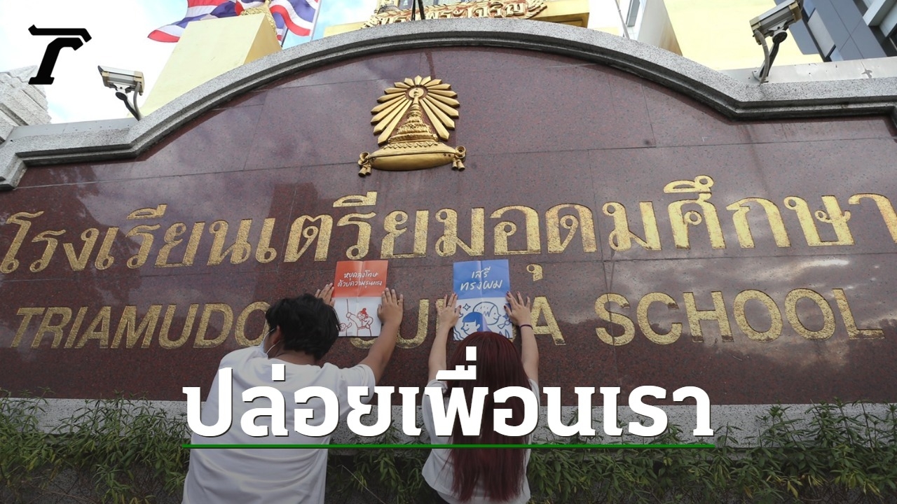 ม็อบเกียมอุดมไม่ก้มหัวให้เผด็จการ แจกหนังสือคู่มือ “เอาตัวรอดในโรงเรียน” ปราศรัย เรียกร้องให้ปล่อยตัวแกนนำที่ถูกคุมขัง ทนายจูน-หมอทศพร-ส.ส.อมรัตน์ ร่วมยืนหยุดขังด้วย