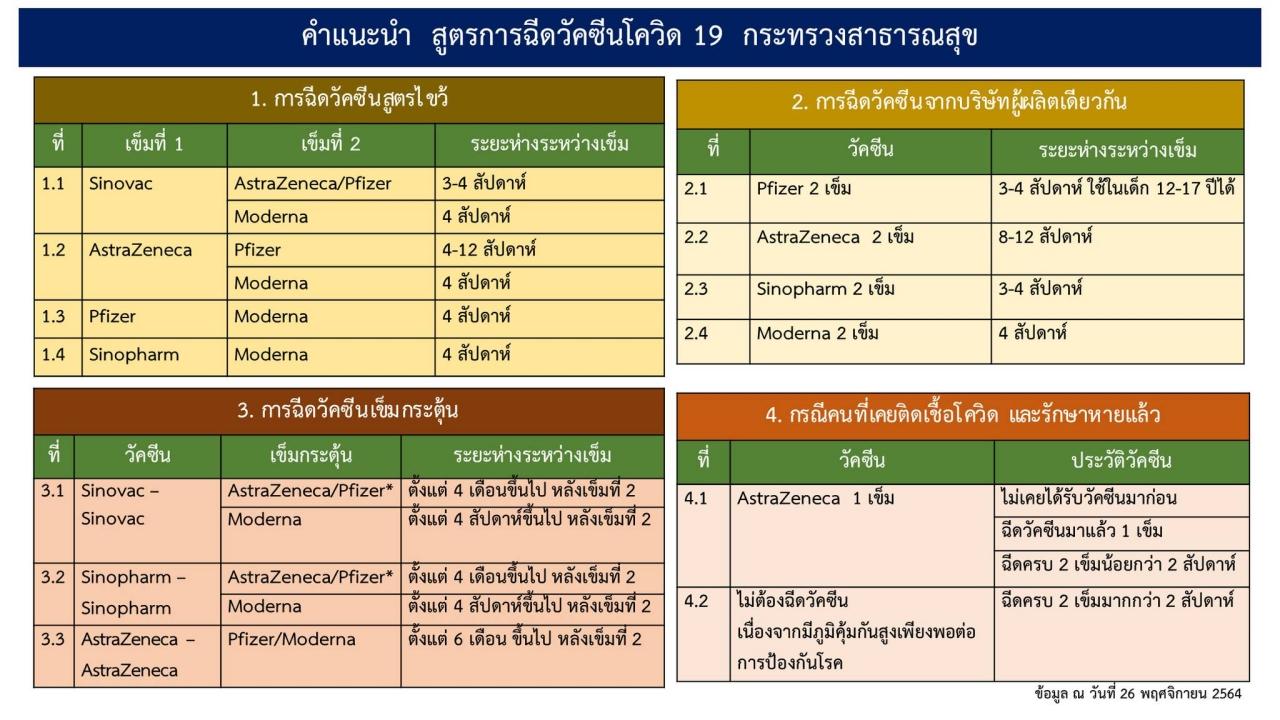 - สรุปสูตรการฉีดวัคซีนโควิด-19 ในไทย ทั้งชนิดเดียวกัน สูตรไขว้ และบูสเตอร์โดส ระยะเวลาไหนเหมาะสม