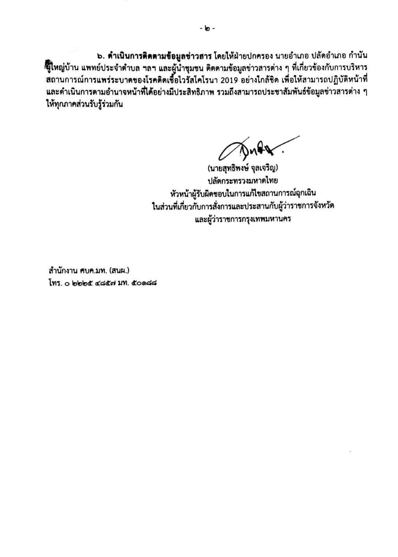 “ให้ฝ่ายปกครอง นายอำเภอ ปลัดอำเภอ กำนัน ผู้ใหญ่บ้าน แพทย์ประจำตำบล ฯลฯ และผู้นำชุมชน ติดตามข้อมูลข่าวสารต่างๆ ที่เกี่ยวข้องกับการบริหารสถานการณ์การแพร่ระบาดของโรคโควิด-19 อย่างใกล้ชิด เพื่อสามารถปฏิบัติหน้าที่และตามอำนาจหน้าที่ได้อย่างมีประสิทธิภาพ รวมถึงมีข้อมูลเพื่อสื่อสารสร้างความเข้าใจให้กับทุกภาคส่วนในพื้นที่ได้รับรู้ร่วมกัน” นายสุทธิพงษ์ กล่าวทิ้งท้าย
