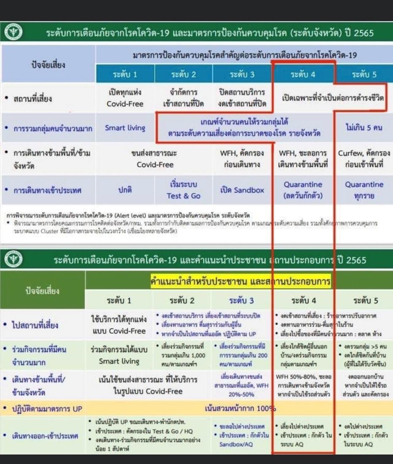 ระดับ 4 ประชาชนต้องปฏิบัติตัวดังต่อไปนี้