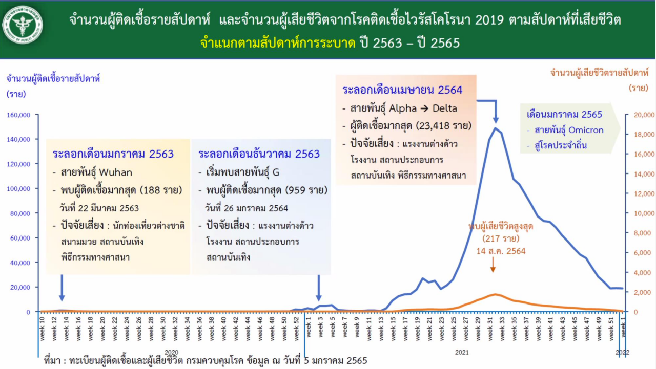 - มีผู้เสียชีวิตเพิ่ม 19 ศพ ยอดผู้เสียชีวิตสะสม 21,799 ศพ (ตั้งแต่ปี 2563)