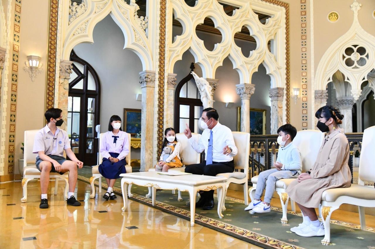 “ลุงตู่” เปิดทำเนียบให้เด็กนั่งเก้าอี้นายกฯ ในวันเด็กแห่งชาติ พร้อมพูดคุยรับฟังปัญหาจากตัวแทนเยาวชน ย้ำ ต้องยึดมั่นในสถาบันหลักของชาติ และขอให้ทุกคนรักประเทศไทย
