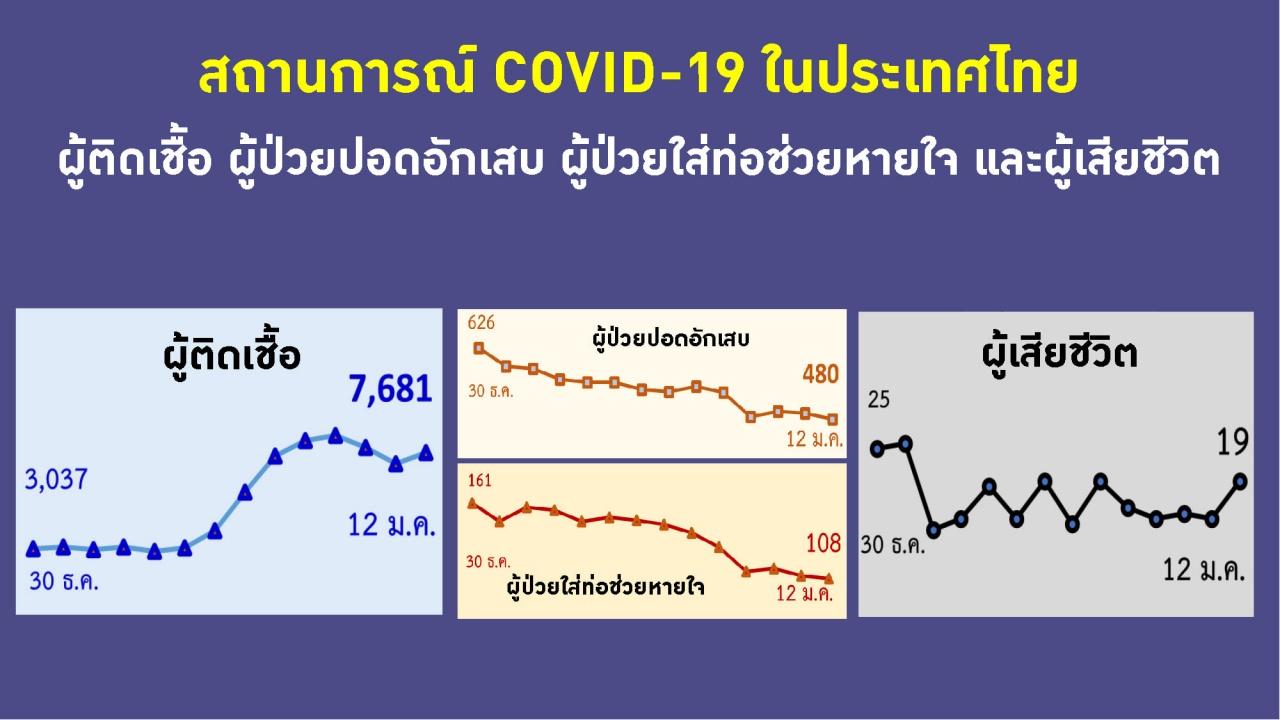 วันที่ 12 ม.ค. 65 ที่ทำเนียบรัฐบาล แพทย์หญิงสุมนี วัชรสินธุ์ ผู้อำนวยการสำนักสื่อสารความเสี่ยงและพัฒนาพฤติกรรมสุขภาพ กรมควบคุมโรค ในฐานะผู้ช่วยรองโฆษกศูนย์บริหารสถานการณ์แพร่ระบาดของโรคติดเชื้อไวรัสโคโรนา 2019 (โควิด-19) หรือ ศบค. เปิดเผยว่า จำนวนผู้ติดเชื้อในประเทศไทยมีอัตราลดลง เนื่องมาจากการปฏิบัติตามมาตรการต่างๆ โดยพบว่ามีอัตราการติดเชื้อ 100 ต่อ 1 แสนคน ส่วนความรุนแรงของโรคมีน้อยกว่าระลอกเดือนเมษายน 2564 เนื่องจากประชากรได้รับวัคซีนมากขึ้น ซึ่งแสดงให้เห็นว่าแม้จะมีผู้ติดเชื้อเพิ่มขึ้น แต่ความรุนแรงของโรคลดลง ซึ่งโควิด-19 มีทิศทางจะเป็นโรคประจำถิ่นแล้ว แต่โควิดไม่เหมือนโรคอื่นๆ แม้จะกลายเป็นโรคประจำถิ่น แต่ยังต้องอยู่แบบวิถีใหม่ หรือ New Normal โดยจะต้องใส่หน้ากากอนามัยเมื่อออกจากบ้านตลอดเวลา เว้นระยะห่าง ล้างมือบ่อยๆ เพื่อลดความเสี่ยงต่อการติดเชื้อและการแพร่เชื้อ ส่วนที่ไทยยังไม่มีการรายงานผู้เสียชีวิตจากโอมิครอน ดังนั้นเมื่อเทียบความรุนแรงกับเดลตา ยังถือว่าน้อยกว่ามาก