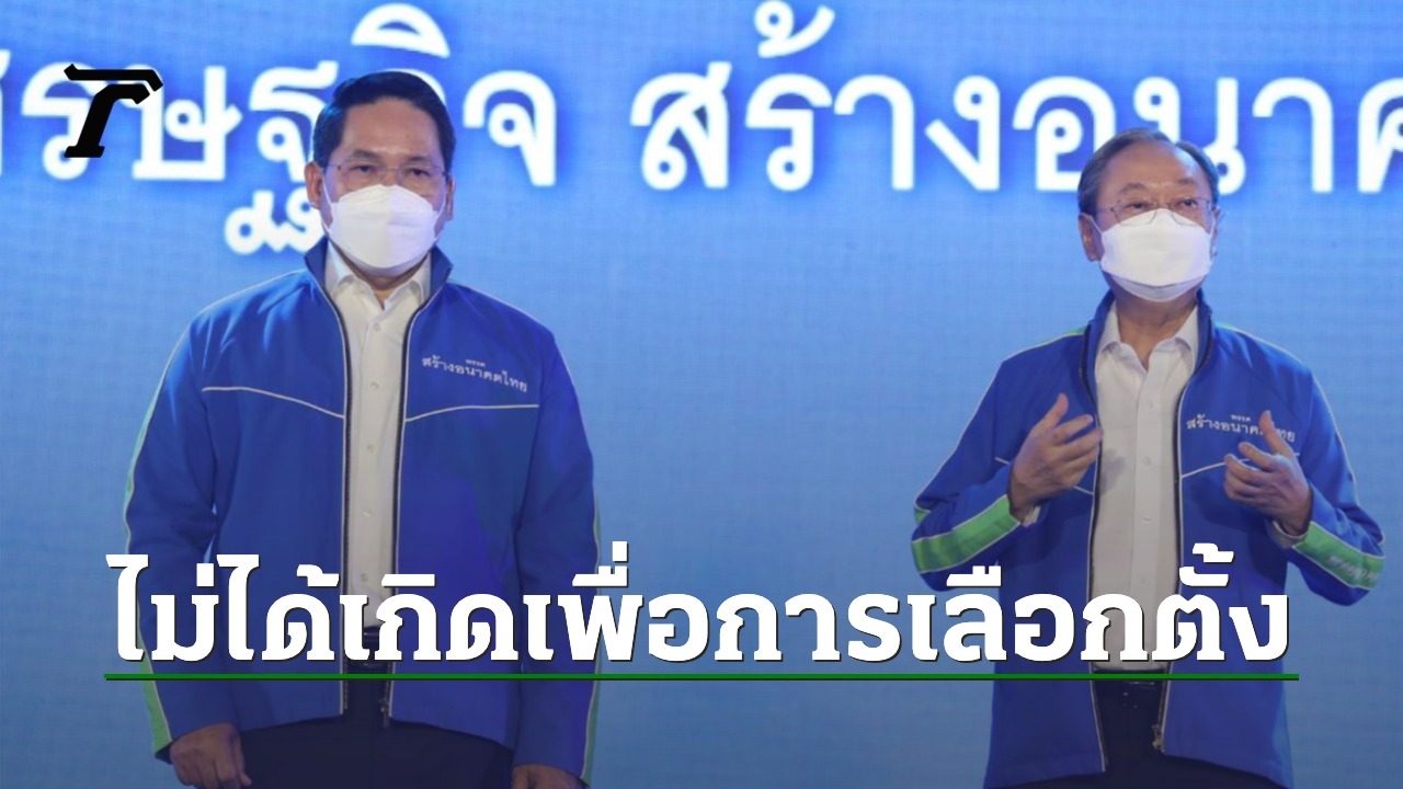 อย่างไรก็ตาม การเกิดของพรรคไม่ได้เกิดเพื่อการเลือกตั้ง แต่เพื่อให้เรามีความหวัง เป็นจุดเริ่มที่จะทำงานบนอุดมการณ์เดียวกัน เป็นหัวใจสำคัญของพรรคการเมือง สร้างให้สังคมมีความเชื่อมั่น เราเคยทำพรรคและเป็นผู้อาสาที่จะรวบรวมบุคลากร สิ่งที่ตั้งใจคือพรรคสร้างอนาคตไทยจะต้องเป็นเสาหลัก เชื่อมโยงจุดเปลี่ยนผ่าน วางรากฐานไปสู่อนาคตข้างหน้า เปิดกว้างกับทุกอาชีพและทุกวัย ประคับประคองคนรุ่นใหม่ สร้างความรู้ ประสบการณ์ บุคลากร ย้ำว่าไม่ใช่เพื่อการเลือกตั้ง แต่จะยึดโยงกับประชาชน สร้าง ส.ส.ของพรรคให้เป็น ส.ส.อุดมการณ์ ในการทำงานนิติบัญญัติเพื่อบ้านเมือง พร้อมขอบคุณที่ได้รับความสนใจอย่างมาก.