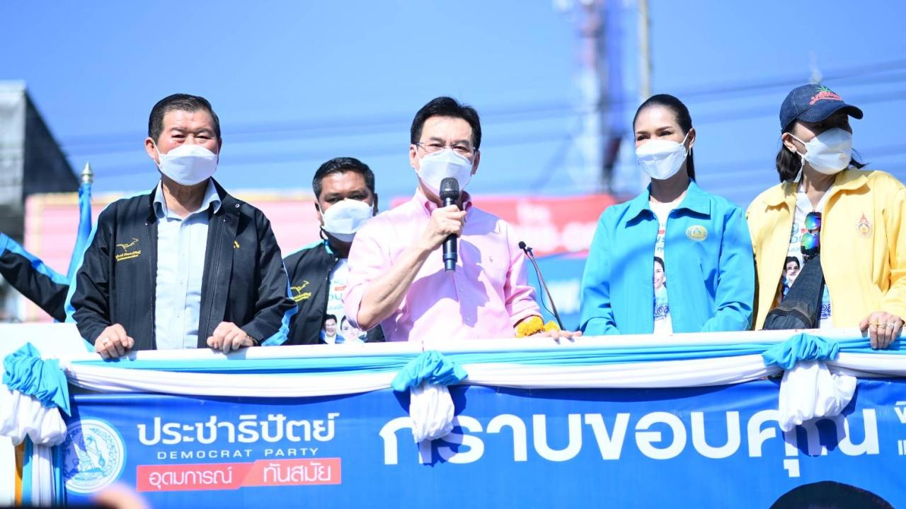 “พวกผมนั้นเจียมตัวเสมอ โดยเฉพาะในช่วงยุคที่ผมเป็นหัวหน้าพรรค ผมก็เจียมตัวเสมอ ผมพยายามพูดว่าเราก็ยังต้องทำงานหนักต่อไป ต้องทุ่มเทต่อไป ทำงานให้ปรากฏผลเป็นรูปธรรม ทั้งในพื้นที่ทั่วประเทศ และในฐานะที่เราเป็นพรรคร่วมรัฐบาล งานกระทรวงไหนที่เรารับผิดชอบทุกคน ท่านนิพนธ์ก็ตระเวนมอบโฉนดให้กับพี่น้องประชาชนทั่วประเทศ ผมรับผิดชอบกระทรวงพาณิชย์ เราก็เข้ามาดูแลสนับสนุนประกันรายได้ให้เกษตร ทุ่มเทเรื่องการส่งออก สินค้าราคาขึ้นตอนนี้ก็พยายามบริหารจัดการ ตอนนี้ก็เริ่มทรงและเริ่มดีขึ้น กระทรวงเกษตรก็เข้าไปดูแลพี่น้องเกษตรกร กระทรวง พม. ก็ดูแลกลุ่มเปราะบางต่างๆ เราก็พูดกันเสมอว่าเราต้องทุ่มเทในการทำหน้าที่ให้เต็มกำลังความสามารถ เพราะว่าประชาธิปัตย์ยังต้องอยู่ต่อไปอีกนาน พรรคการเมืองของเรา เราเป็นสถาบันทางการเมืองไม่ใช่พรรคการเมืองที่คิดว่าตั้งขึ้นมาชั่วครั้งชั่วคราวแล้วก็จะเลิกรากิจการทางการเมืองไป เพราะฉะนั้นเราต้องทำให้ดีที่สุด ทำให้เต็มที่ เต็มกำลังความสามารถ ทุกคนที่เข้ามาร่วมงานกับพรรค” หัวหน้าพรรคประชาธิปัตย์ กล่าว...