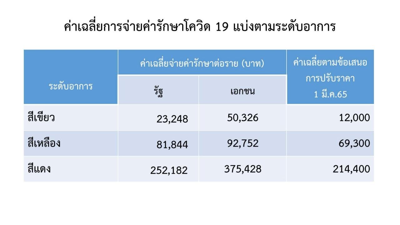 ทั้งนี้ ตั้งแต่วันที่ 1 มี.ค. 2565 ทางสำนักงานหลักประกันสุขภาพแห่งชาติ (สปสช.) จะให้ค่าเฉลี่ยที่ปรับราคาลงมา เนื่องจากโควิด-19 สายพันธุ์โอมิครอนไม่รุนแรง เป็นดังนี้
