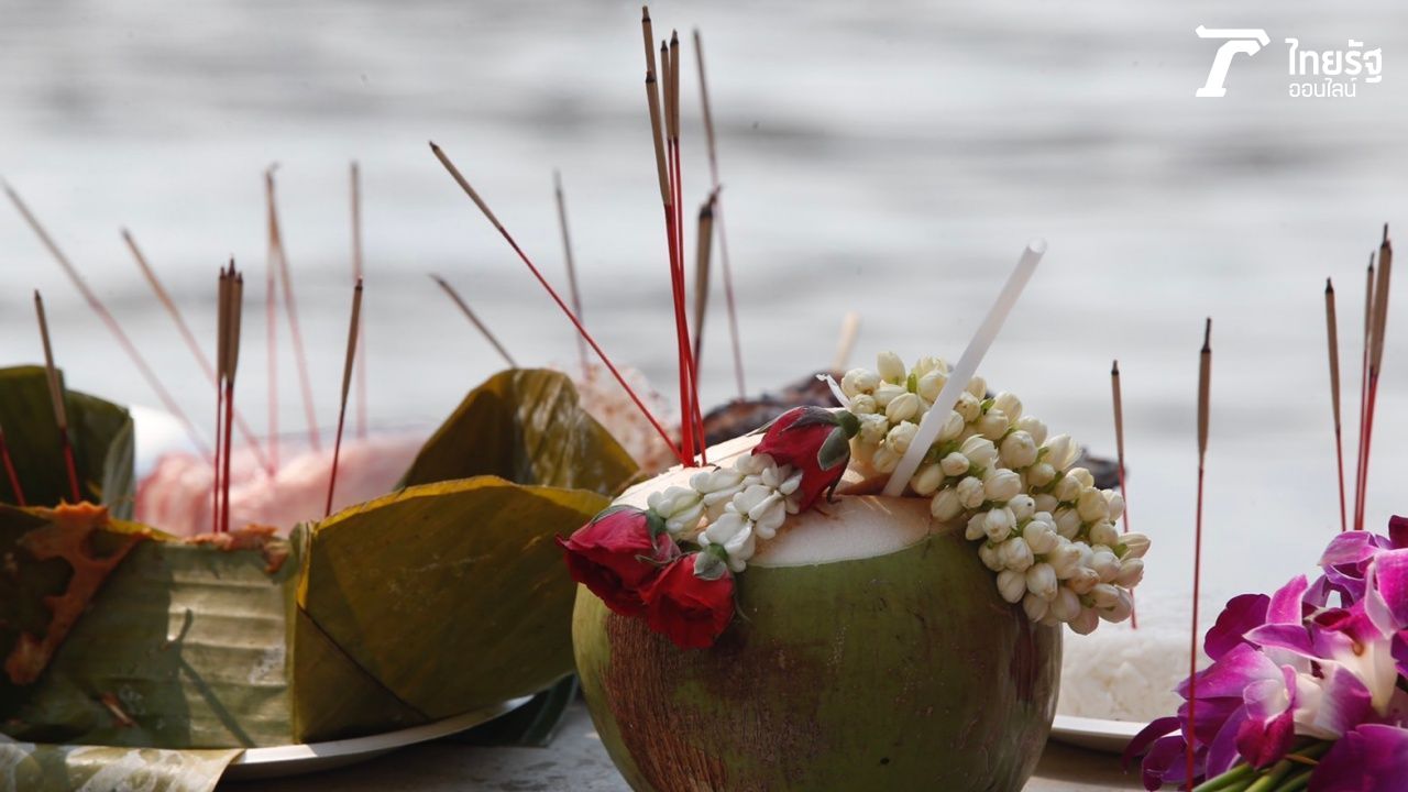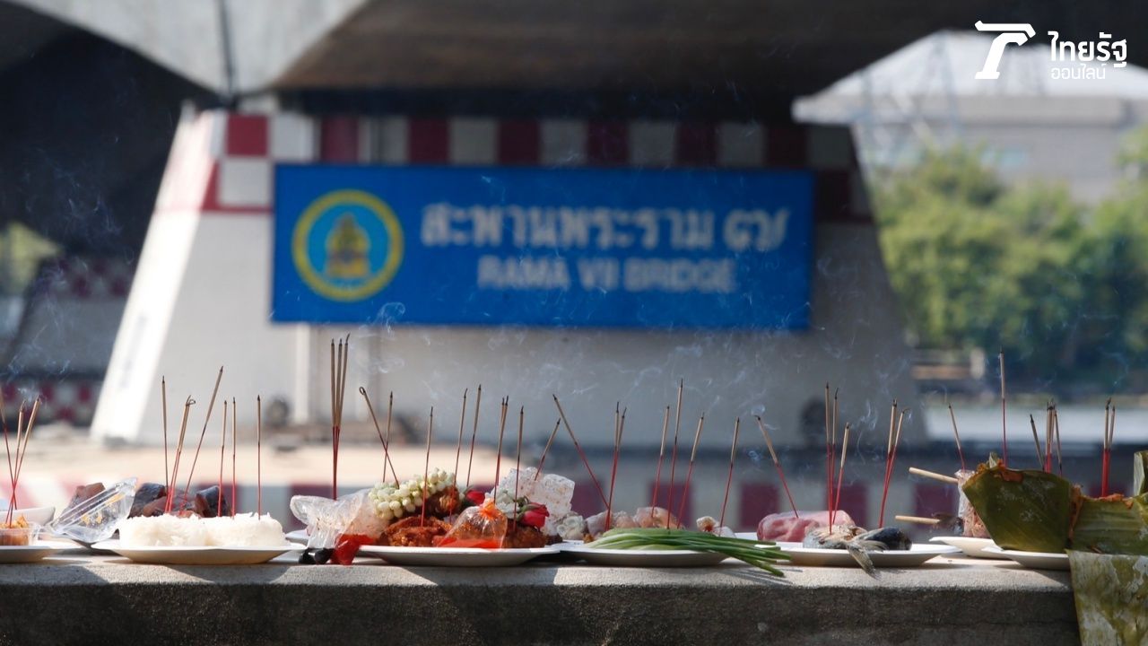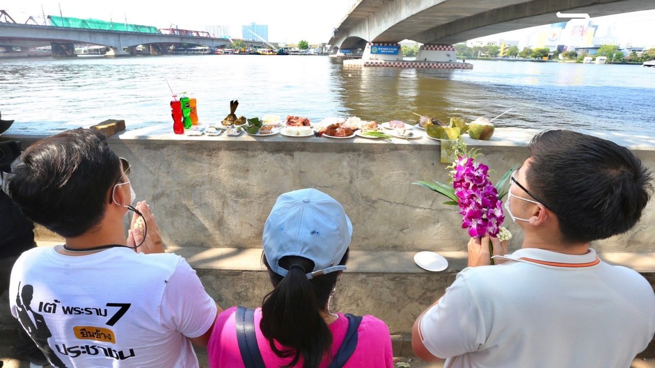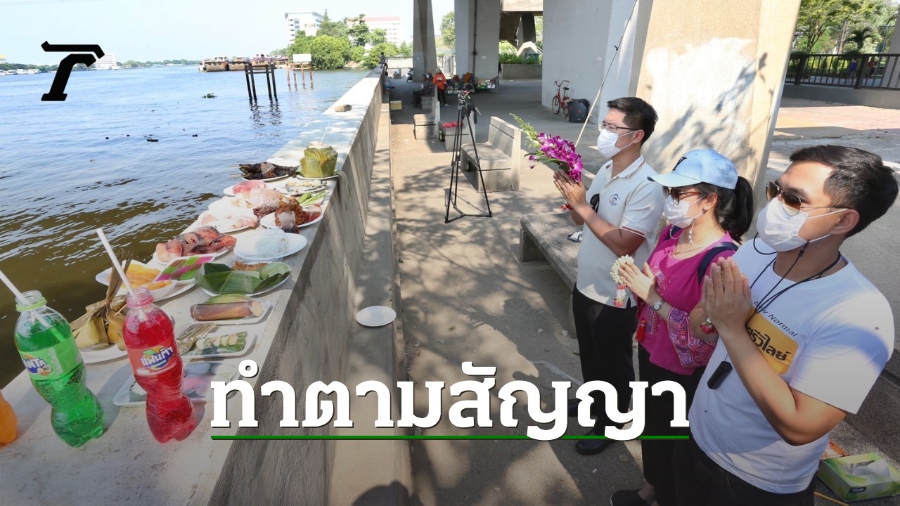 "เต้" มงคลกิตติ์ สุขสินธารานนท์ ส.ส.และหัวหน้าพรรคไทยศรีวิไลย์ นำเครื่องเซ่นไหว้ สิ่งศักดิ์สิทธิ์ และสัมภเวสี สะพานพระราม 7 ตามสัญญา หลังอธิษฐานแล้วพบร่างน้อง "แตงโม" โผล่กลางเจ้าพระยา