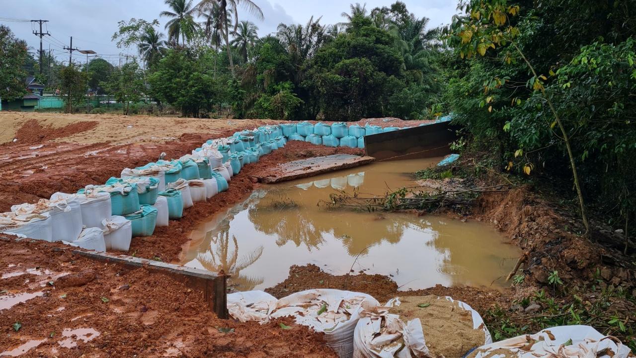 ทั้งนี้ เมื่อวันที่ 27 ก.พ. ที่ผ่านมา กองอำนวยการน้ำแห่งชาติ ได้รายงานผลการลงพื้นที่ของหน่วยงานที่เกี่ยวข้องในการแก้ไขปัญหาผลกระทบจากสถานการณ์น้ำท่วมในพื้นที่ จ.นราธิวาส ได้แก่ ผู้ว่าราชการจังหวัดนราธิวาส ผู้อำนวยการสำนักงานชลประทานที่ 17 ผู้อำนวยการสำนักงานทรัพยากรน้ำแห่งชาติ ภาค 4 และหน่วยงานที่เกี่ยวข้อง เพื่อแก้ไขปัญหาจุดน้ำล้นข้ามพนังกั้นน้ำบริเวณหมู่ 1 บ้านมูโนะ ประมาณ 15 เซนติเมตร จากปริมาณน้ำที่ไหลจากแม่น้ำโก-ลก เข้าท่วมพื้นที่ชุมชนมูโนะมากกว่า 500 ครัวเรือน และเข้าท่วมถนนหมายเลข 42 ทำให้ต้องปิดการจราจรช่องทางขาออกจังหวัดนราธิวาส ซึ่งกรมชลประทานได้เร่งเสริมบิ๊กแบ็ก (Big Bag) บริเวณพนังกั้นน้ำริมแม่น้ำโก-ลก ที่ ต.มูโนะ เป็นการเร่งด่วน เพื่อรับมือกับมวลน้ำในแม่น้ำโก-ลก ที่มีแนวโน้มเพิ่มขึ้นอย่างต่อเนื่อง พร้อมทั้งได้เพิ่มความมั่นคงแข็งแรงให้กับพนังกั้นน้ำดังกล่าวให้มากที่สุด ขณะเดียวกันหน่วยงานที่เกี่ยวข้องได้นำเรือท้องแบนเข้าไปเร่งอพยพประชาชนในพื้นที่ลุ่มต่ำบริเวณดังกล่าวประมาณ 10 ครัวเรือนออกจากพื้นที่แล้ว