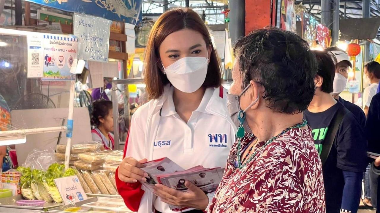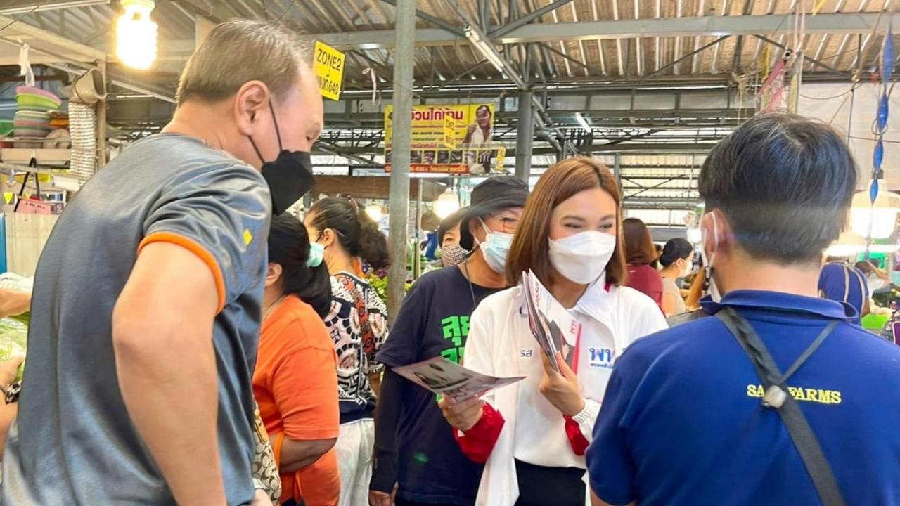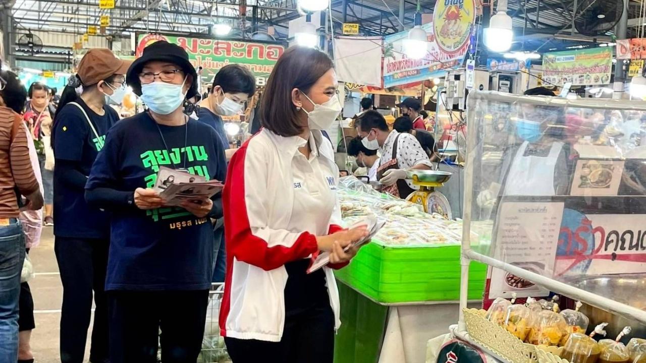 น.ส.มธุรส เบนท์ ว่าที่ผู้สมัคร ส.ก.เขตสะพานสูง พรรคเพื่อไทย ลงพื้นที่ ตลาดนัดหมู่บ้านสัมมากร เผย พ่อค้า-แม่ค้า บ่นอุบ ของแพง ยอดขายตก เดือดร้อนหนัก เหตุต้นทุนการผลิต โดยเฉพาะราคาน้ำมันพุ่ง กำลังซื้อลดลง