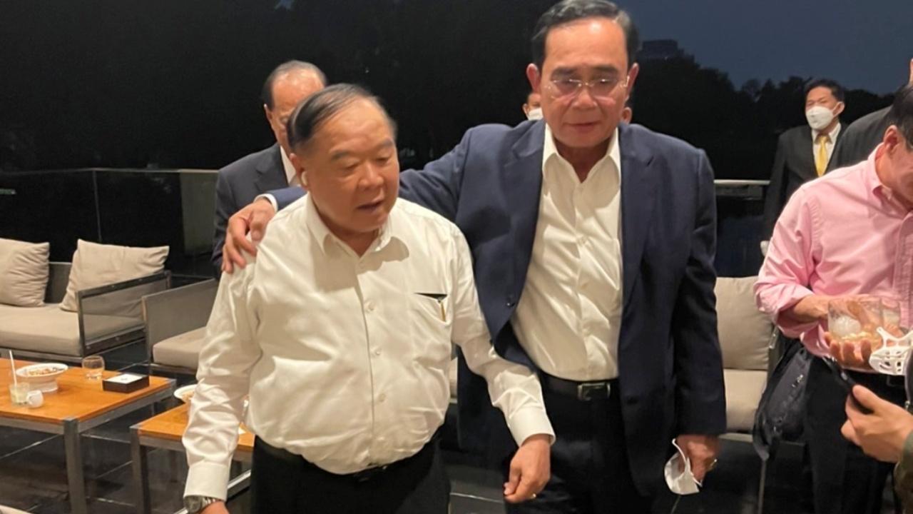 จากนั้นนายกฯเดินควง พล.อ.ประวิตร วงษ์สุวรรณ รองนายกรัฐมนตรี พล.อ.อนุพงษ์ เผ่าจินดา รมว.มหาดไทย พร้อมด้วยหัวหน้าพรรคและเลขาธิการพรรคร่วมรัฐบาลทั้งหมด เดินออกจากห้องรับประทานอาหาร โดยทันทีที่เดินออกมา นายกฯได้หันมาเห็นสื่อมวลชนที่มาติดตามทำข่าวอยู่ด้านหน้า จึงได้หันมาชูสัญลักษณ์ "ไอเลิฟยู" ให้ผู้สื่อข่าว ก่อนจะโอบกอดพล.อ.ประวิตร ซึ่ง พล.อ.ประวิตร ก็ได้กอดกลับ