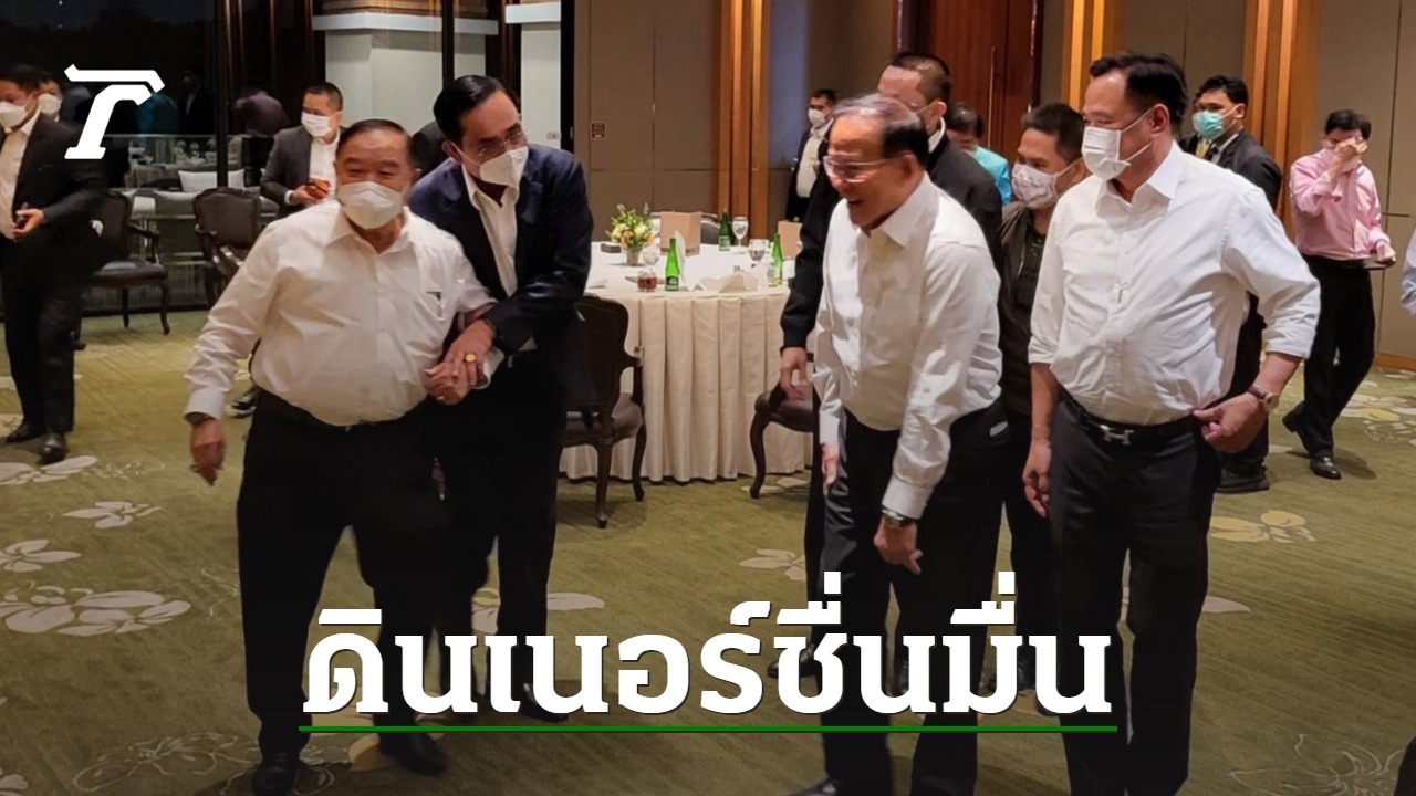 วงดินเนอร์พรรคร่วม รบ.ชื่นมื่น ใช้เวลาดื่มด่ำ 2 ชม. "บิ๊กตู่" ชู "ไอเลิฟยู" ให้นักข่าว โชว์หวานโอบกอด "บิ๊กป้อม" ก่อนแยกย้ายกันกลับ-งดจ้อสื่อ คาดเจ้าภาพมื้อหน้าเป็น ภท. ตามด้วย ปชป.คิวต่อไป