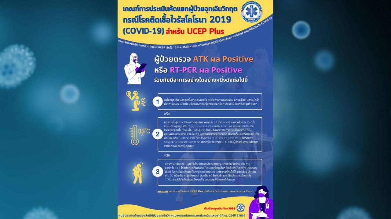 แพทย์หญิงอภิสมัย กล่าวต่อว่า สำหรับระเบียบ “ยูเซ็ปพลัส” (UCEP COVID-19 Plus) หากท่านเป็นผู้ป่วยกลุ่มสีเขียว ไม่มีอาการรุนแรง ให้โทร.เข้าระบบหมายเลขโทรศัพท์ 1330 ตามปกติ เพื่อสงวนเตียง กลุ่มสีเหลือง สีแดง ไว้สำหรับผู้มีความจำเป็นจริงๆ ที่จะต้องโทร. 1669 แต่ตอนนี้การพิจารณาคำว่า วิกฤติ ก็ขอให้ทางสถานพยาบาล ศึกษาหลักเกณฑ์ให้ดี เพราะไม่ใช่สีแดงอย่างเดียวแล้ว ทาง สธ.มีการปรับเกณฑ์เพิ่มขึ้น