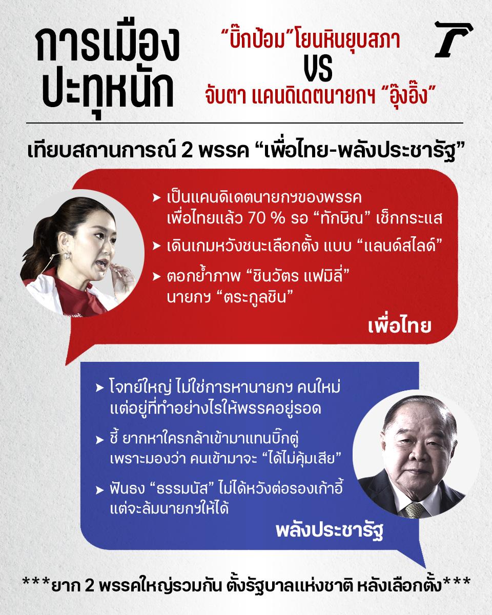 - "พลังประชารัฐ" หาแคนดิเดตนายกฯคนใหม่ แต่คงยาก ชี้โจทย์ใหญ่ไม่ใช่หาคนแทนบิ๊กตู่ แต่อยู่ที่ทำอย่างไรให้พรรคอยู่รอด ประคับประคอง ไปสู่การเลือกตั้งใหญ่ครั้งหน้ามากกว่า