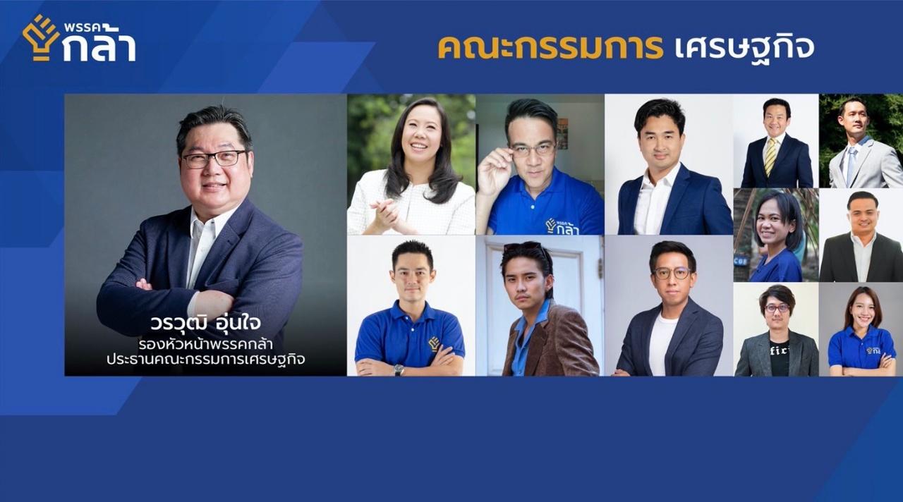ส่วนทีมเศรษฐกิจ แต่งตั้ง นายวรวุฒิ อุ่นใจ รองหัวหน้าพรรค อดีตนายกสมาคมค้าปลีกไทยเป็น เป็นประธานทีมเศรษฐกิจ ร่วมกับนักธุรกิจรุ่นใหม่ที่ อาทิ ดร.อัครเวช โชตินฤมล นักธุรกิจด้านอสังหาริมทรัพย์ ดูแลเศรษฐกิจสีเทาด้วยภารกิจการเปลี่ยนส่วยเป็นภาษี ชูนโยบาย "กล้า Green Deal" เพื่อหารายได้เพิ่มเข้าประเทศ, นายเทมส์ ไกรทัศน์ นักธุรกิจภาคบริการ ว่าที่ผู้สมัคร ส.ส.ภูเก็ต ดูแลภารกิจเศรษฐกิจท่องเที่ยว ร่วมกับ ดร.เดือนเต็มดวง ณ เชียงใหม่ ที่จะดูแลภารกิจเศรษฐกิจท่องเที่ยวล้านนา, นายสราวุฒิ สุวรรณรัตน์ นักธุรกิจส่งออกจิวเวลรี่รายใหญ่ ดูแลภารกิจเศรษฐกิจการส่งออก, นายสืบศิษฏ์ ศานติศาสน์ ดูแลภารกิจการศึกษาเพื่ออาชีพ กำลังคน กำลังแรงงานภาคการผลิตให้มีทักษะใหม่ตอบโจทย์ระบบเศรษฐกิจยุคปัจจุบันและอนาคต, นายกฤษดา เฉลิมสุข อดีตนายกสมาคมโปรแกรมเมอร์ เทคโนโลยีเพื่อเศรษฐกิจ มาทำงานด้านเทคโนโลยีเพื่อเศรษฐกิจ เสริมยุทธศาสตร์ของพรรค