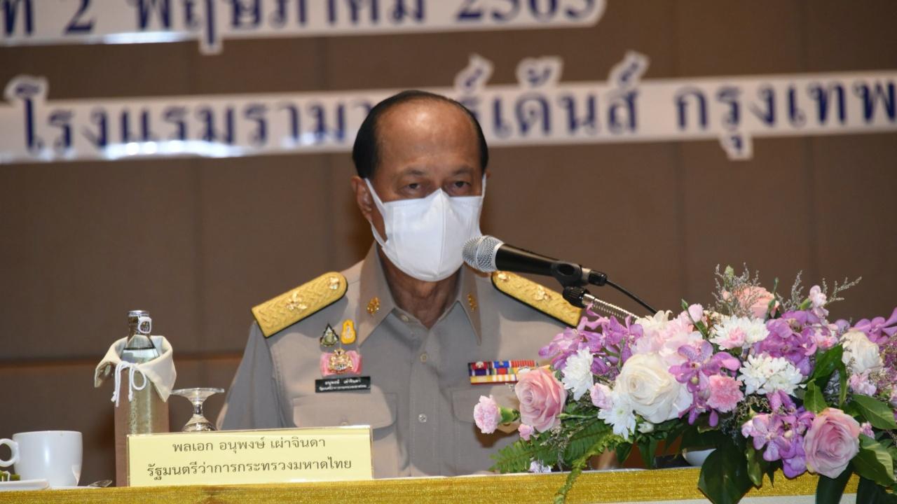 วันที่ 2 พ.ค. ที่ห้องแกรนด์บอลรูม โรงแรมรามาการ์เด้นท์ ถนนวิภาวดีรังสิต กรุงเทพมหานคร พลเอก อนุพงษ์ เผ่าจินดา รมว.มหาดไทย เป็นประธานการประชุมขับเคลื่อนและติดตามนโยบายของรัฐบาลและภารกิจสำคัญของกระทรวงมหาดไทย ประจำปีงบประมาณ พ.ศ. 2565 (เดือนพฤษภาคม 2565) โดยมี นายทรงศักดิ์ ทองศรี รมช.มหาดไทย นายนิพนธ์ บุญญามณี รมช.มหาดไทย ผู้บริหารระดับสูงฝ่ายข้าราชการการเมือง นายสุทธิพงษ์ จุลเจริญ ปลัดกระทรวงมหาดไทย นายขจิต ชัชวานิชย์ ปลัดกรุงเทพมหานคร นายชยาวุธ จันทร นายชัยวัฒน์ ชื่นโกสุม นายอรรษิษฐ์ สัมพันธรัตน์ นายนิรัตน์ พงษ์สิทธิถาวร รองปลัดกระทรวงมหาดไทย นายไตรภพ วงศ์ไตรรัตน์ หัวหน้าผู้ตรวจราชการกระทรวงมหาดไทย คณะผู้ตรวจราชการกระทรวงมหาดไทย นายนิสิต จันทร์สมวงศ์ อธิบดีกรมที่ดิน นายประยูร รัตนเสนีย์ อธิบดีกรมส่งเสริมการปกครองท้องถิ่น นายบุญธรรม เลิศสุขีเกษม อธิบดีกรมป้องกันและบรรเทาสาธารณภัย นายพรพจน์ เพ็ญพาส อธิบดีกรมโยธาธิการและผังเมือง นายสมคิด จันทมฤก อธิบดีกรมการพัฒนาชุมชน ร้อยตำรวจโท ภพชนก ชลานุเคราะห์ รองอธิบดีกรมการปกครอง หัวหน้าหน่วยงานรัฐวิสาหกิจ ที่ปรึกษา ผู้ว่าราชการจังหวัด 76 จังหวัด นายบรรจบ จันทรัตน์ นางสาวปาณิสรา กาญจนะจิตรา ผู้ช่วยปลัดกระทรวงมหาดไทย และหัวหน้าหน่วยงานในสังกัดสำนักงานปลัดกระทรวงมหาดไทย ร่วมประชุม