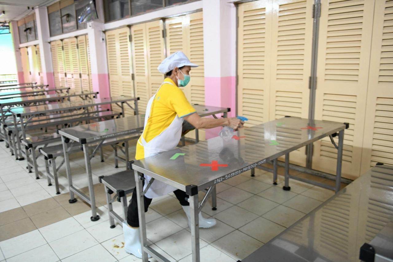 ขณะเดียวกัน เรื่องโอกาสติดเชื้อและแพร่เชื้อในโรงเรียน คือ การถอดหน้ากาก กินข้าวร่วมกันสนทนาระหว่างกันโดยไม่สวมหน้ากาก โรงอาหารควรมีการแยกสำรับกับข้าว แยกพื้นที่งดการพูดคุย ขณะกินอาหาร และเมื่อมีการเล่นร่วมกันควรสวมหน้ากากตลอดเวลา แต่ถ้ามีการแพร่ระบาดในโรงเรียนขอให้ทุกสถานศึกษาดำเนินการตามแผนเผชิญเหตุ เช่น หากพบผู้ติดเชื้อเข้าไปเรียนให้ปิดทำความสะอาด 3 วัน แล้วเปิดเรียนตามปกติ สิ่งที่น่ากังวล คือ ถ้ามีผู้ติดเชื้อมากกว่า 5 คน มีการแพร่กระจายมากกว่า 2 ห้อง ทางโรงเรียนต้องประสานไปยังสำนักงานสาธารณสุขจังหวัด เพื่อเข้ามากำกับดูแล ระงับการแพร่ระบาดต่อไป
