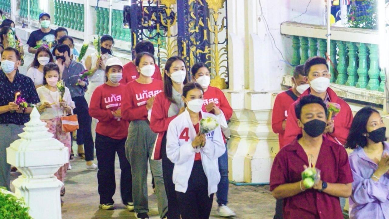 “อุ๊งอิ๊ง" น.ส.แพทองธาร ชินวัตร หัวหน้าครอบครัวเพื่อไทย พร้อมคณะ ร่วมเวียนเทียน พร้อมผู้สมัคร ส.ก.เพื่อไทย ในวันวิสาขบูชา ที่วัดบึงทองหลาง เพื่อความเป็นสิริมงคล