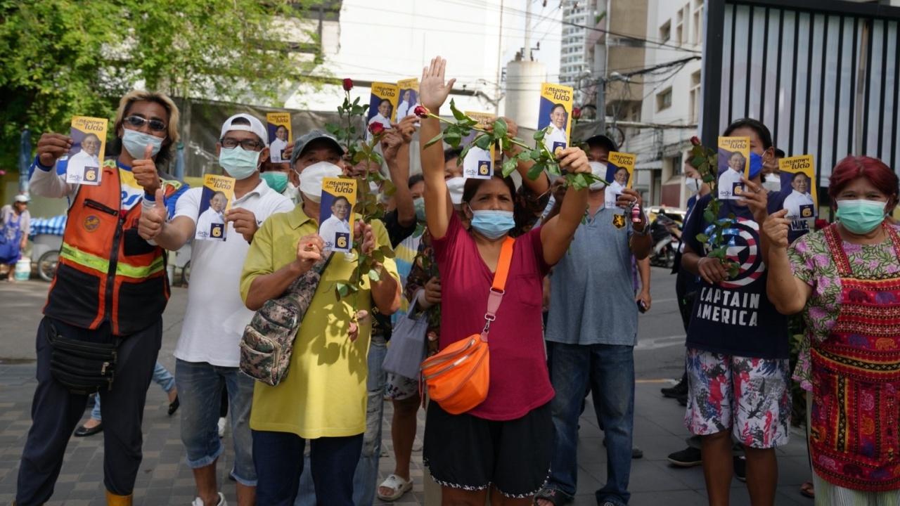 วันที่ 18 พ.ค.พล.ต.อ.อัศวิน ขวัญเมือง ผู้สมัครผู้ว่าฯ กทม.หมายเลข 6 พร้อมผู้สมัคร ส.ก.กลุ่มรักษ์กรุงเทพ เขตบางคอแหลม หมายลข 5 นายปรุงศักดิ์ เชาวน์ชาติ ลงพื้นที่ขอคะแนนเสียงช่วงเช้าที่ตลาดเสรี เจริญกรุง 109 บริเวณหลังโรงพยาบาลเจริญกรุงประชารักษ์ โดยมีประชาชนมาคอยให้กำลังใจมอบดอกไม้ให้ตลอดการลงพื้นที่