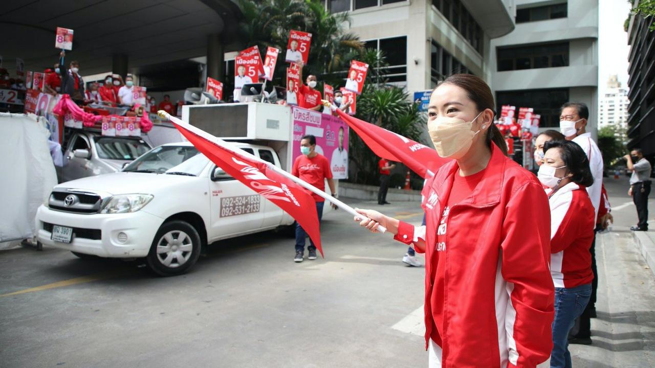 วันที่ 21 พ.ค. นางสาวแพทองธาร ชินวัตร ประธานคณะที่ปรึกษาด้านการมีส่วนร่วมและนวัตกรรมพรรคเพื่อไทยและหัวหน้าครอบครัวเพื่อไทย พร้อมด้วยนายวิชาญ มีนชัยนันท์ ประธานภาค กทม. และอดีตรัฐมนตรีช่วยว่าการกระทรวงสาธารณสุข นางพวงเพ็ชร ชุนละเอียด ผู้อำนวยการการเลือกตั้งสมาชิกสภากรุงเทพมหานคร (ส.ก.) นายดนุพร ปุณณกันต์ ประธานคณะกรรมการรณรงค์หาเสียงเลือกตั้ง ส.ก. นางสาวขัตติยา สวัสดิผล อดีต ส.ส. บัญชีรายชื่อ พร้อมด้วยผู้สมัคร ส.ก. พรรคเพื่อไทย ร่วมกันปล่อยขบวน ‘คาราวานหาเสียง ส.ก. 50 เขต’ เพื่อรณรงค์ให้คนกรุงเทพฯ ออกไปใช้สิทธิเลือกตั้ง ส.ก. ในวันที่ 22 พฤษภาคม 2565