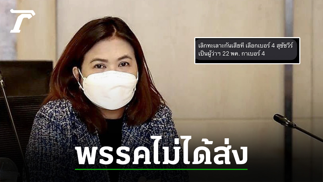 วันที่ 21 พ.ค. 2565 ตามที่การส่งต่อภาพข้อความ SMS “เลิกทะเลาะกันเสียที เลือกเบอร์ 4 สุชัชวีร์เป็นผู้ว่าฯ 22 พค. กาเบอร์ 4” นั้น ศูนย์อำนวยการเลือกตั้งผู้ว่าฯ กทม. และ ส.ก. พรรคประชาธิปัตย์ โดยนางดรุณวรรณ ชาญพิพัฒนชัย รองโฆษกพรรค และรอง ผอ.ศูนย์ ระบุว่า เรื่องดังกล่าว ทางศูนย์ฯ ไม่ทราบที่มา และไม่ได้เป็นผู้ส่งข้อความดังกล่าว ซึ่งอาจมีผู้ไม่หวังดีกระทำการไปโดยหวังผลบางอย่าง ทำให้มีผู้เข้าใจผิดและส่งผลกระทบต่อผู้สมัครของพรรค