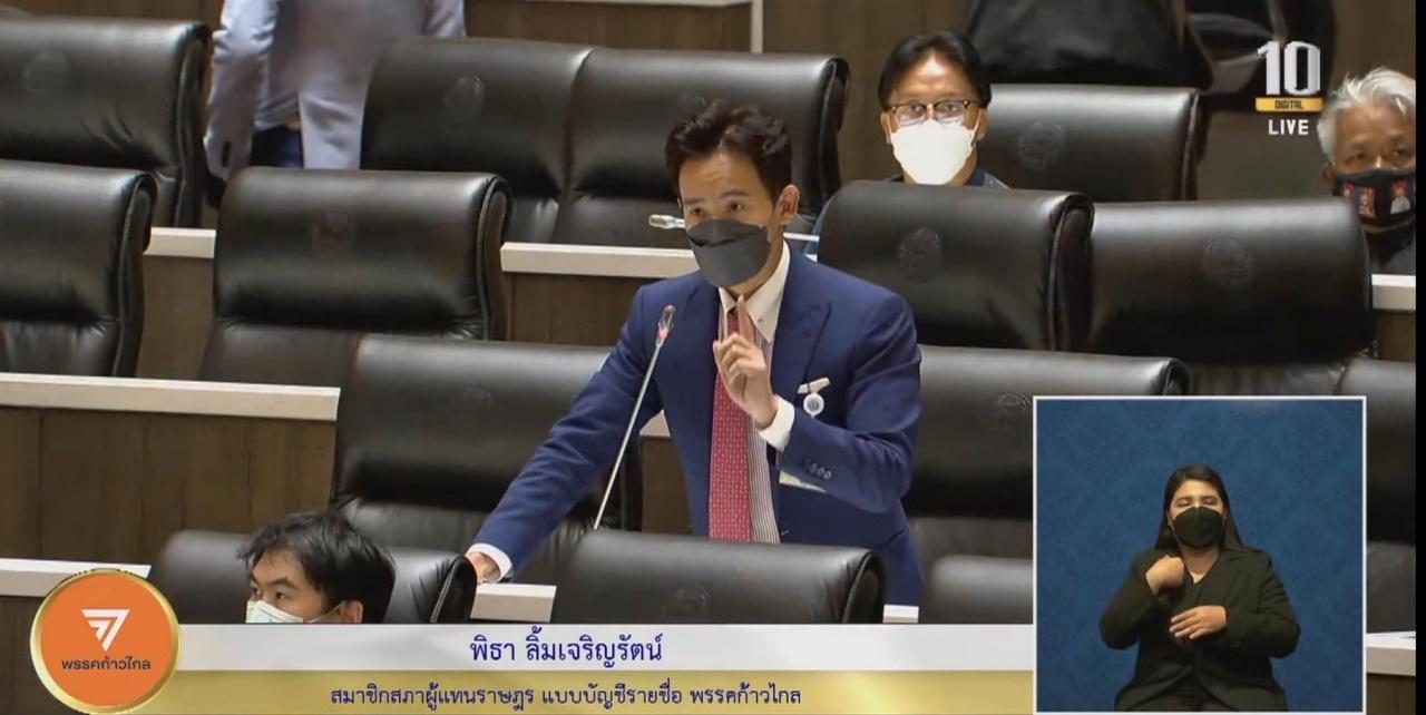 ทำให้ นายพิธา ลิ้มเจริญรัตน์ หัวหน้าพรรคก้าวไกล ลุกขึ้นกล่าวอภิปรายต่อว่า ในกลุ่มไลน์ดังงกล่าวมีสมาชิก 37 คน ในรูปเป็นใคร ตนเองเห็นแล้ว แต่เราก็ไม่ได้ว่าว่าเป็นใคร แต่ยืนยันว่า ทางพรรคไม่ได้มีนโยบายในการยกเลิกบำนาญอย่างที่พูด แค่มองว่าเป็นงบประมาณที่สูง อยากจะขอความร่วมมือข้าราชการวดูว่าจะทำอย่างไร เพื่อให้มีการยกสวัสดิการประชาชนขึ้นมาให้เท่าเทียมกัน และประโยคสุดท้าย ที่นายสาธิตไม่ได้พูดถึงคือ หากพรรคก้าวไกลเข้าไปบำนาญจะถูกยกเลิก ทำให้พรรคตนเองเสียหาย ซึ่งเป็นข่าวปลอม