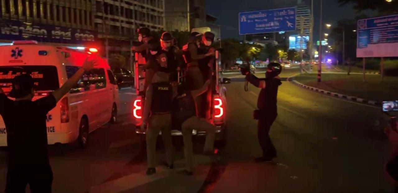 เวลา 20.40 น. ผู้สื่อข่าวรายงานว่า เจ้าหน้าที่ คฝ. ได้ถอนกำลังออกบริเวณริมถนนสามเหลี่ยมดินแดงหมดแล้ว ส่วนบรรยากาศโดยรวมยังสันติ ไม่มีเหตุความรุนแรง หรือวุ่นวาย ขณะที่ผู้ชุมนุมบางส่วนได้ทยอยเดินทางกลับแล้ว.