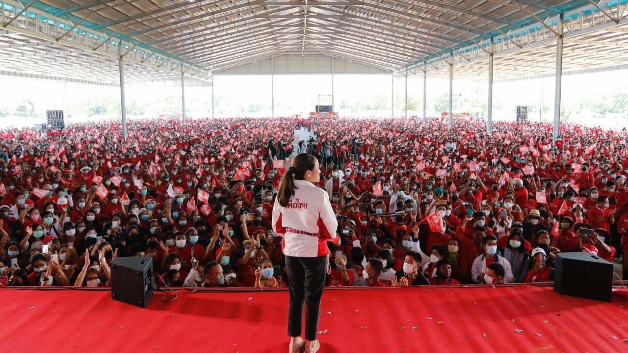 น.ส.แพทองธาร กล่าวว่า ก่อนเข้าพรรคเพื่อไทยสิ่งที่ทำให้ครอบครัวเราอยู่ได้เพราะกำลังใจของพี่น้อง วันนี้เข้ามาเป็นหัวหน้าครอบครัวแล้ว ขอให้พี่น้องให้กำลังใจเราต่อไป อยู่เคียงบ่าเคียงไหล่ในวันที่ทุกข์แล้วความสุขรออยู่ข้างหน้า ครอบครัวเพื่อไทยอยู่มา 20 ปี เป็นธรรมดามีคนออกไปบ้าง ย้ายเข้ามาบ้าง หรือไปสร้างพรรคมาแข่งกับเราบ้าง แต่ขอฝากว่าที่ผู้สมัครตรงนี้ เมื่อการเลือกตั้งมาถึงถ้าประชาชนต้องการให้พรรคเพื่อไทยทำให้ชีวิตประชาชนดีขึ้น บันไดขั้นแรกคือแลนด์สไลด์ชนะเลือกตั้งให้ถล่มทลาย เราจะไม่ยอมให้ใครมาปล้นอำนาจอีกแล้ว อำนาจรัฐเท่านั้นที่จะทำให้พรรคเพื่อไทยเข้าไปเปลี่ยนแปลงชีวิตพี่น้อง อยากพ้นหนี้ อยากหายหนี้ อยากหายจนไปนานๆ เลือกพรรคเพื่อไทย กลับบ้านเรารักรออยู่ กลับมาช่วยทำให้คนไทยดีขึ้น กลับมาทำให้ประเทศน่าอยู่กว่านี้และเป็นประเทศของเราทุกคน
