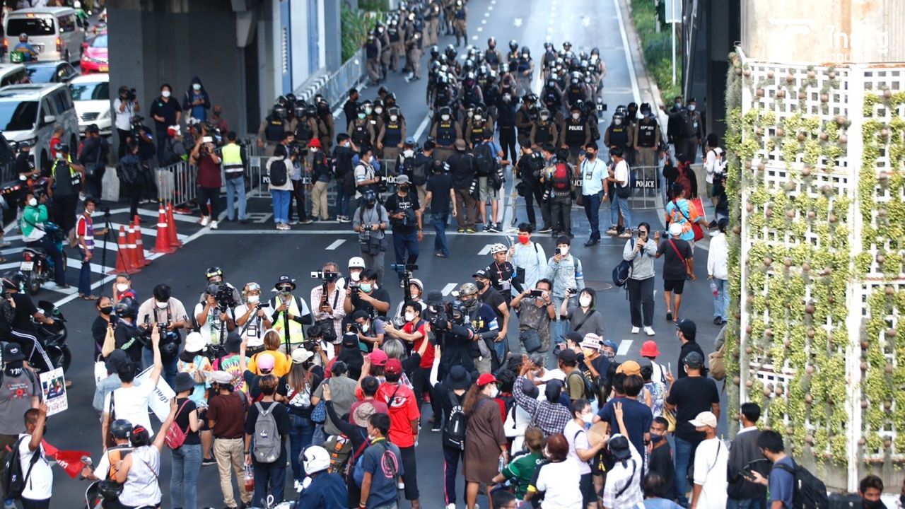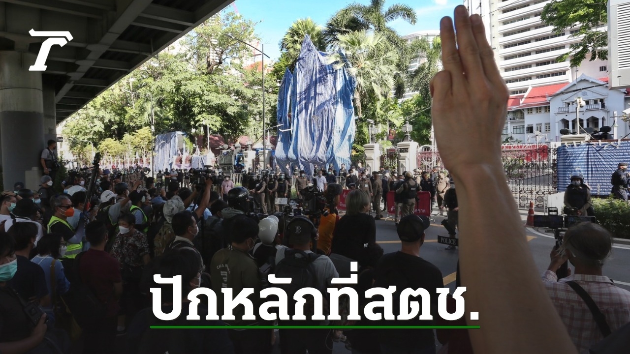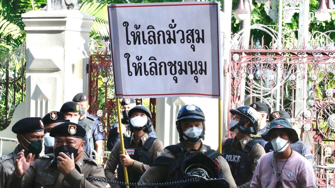 "ม็อบ 18 มิถุนา" ชุมนุมหน้าสำนักงานตำรวจแห่งชาติ (สตช.) เรียกร้อง "ตำรวจเป็นข้าราชการรับใช้ประชาชน ไม่ใช่รัฐบาลเผด็จการ" ตร.ยังนิ่งอยู่ในที่ตั้ง